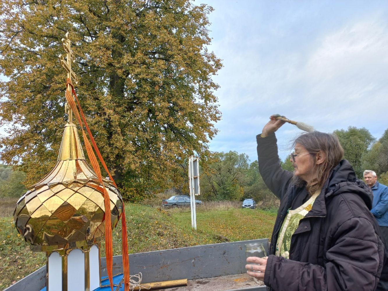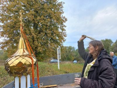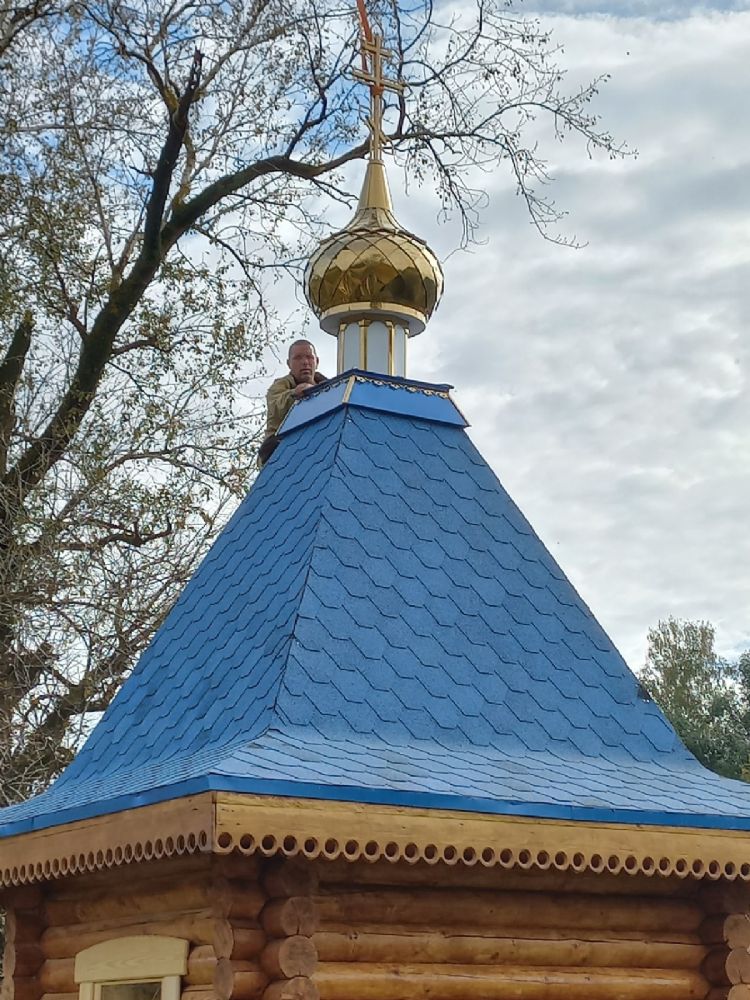 Далее строители с помощью крана подняли купол с крестом на крышу и закрепили его. Теперь на памятном месте возвышается небольшая, но нарядная часовня, где каждый может отдохнуть душой, вознести молитву ко Господу и Его Пречистой Матери.