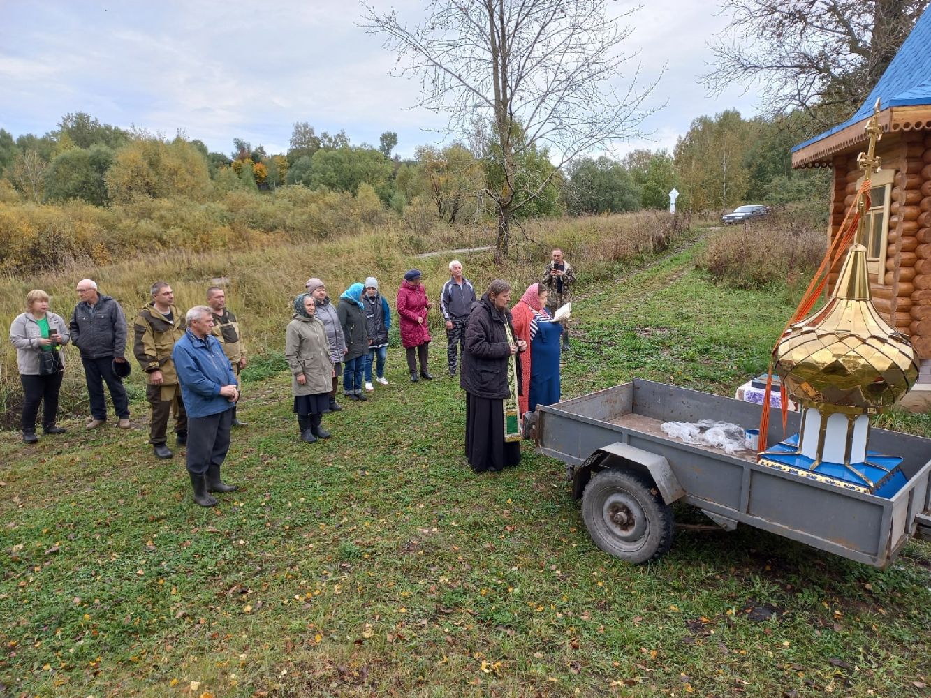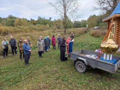 Настоятель храма Пресвятой Троицы села Троицкий Посад протоиерей Виктор Соловьев отслужил молебен с освящением «вновь сооруженного креста». Помолиться и разделить радость собрались прихожане храма жители окрестных деревень.