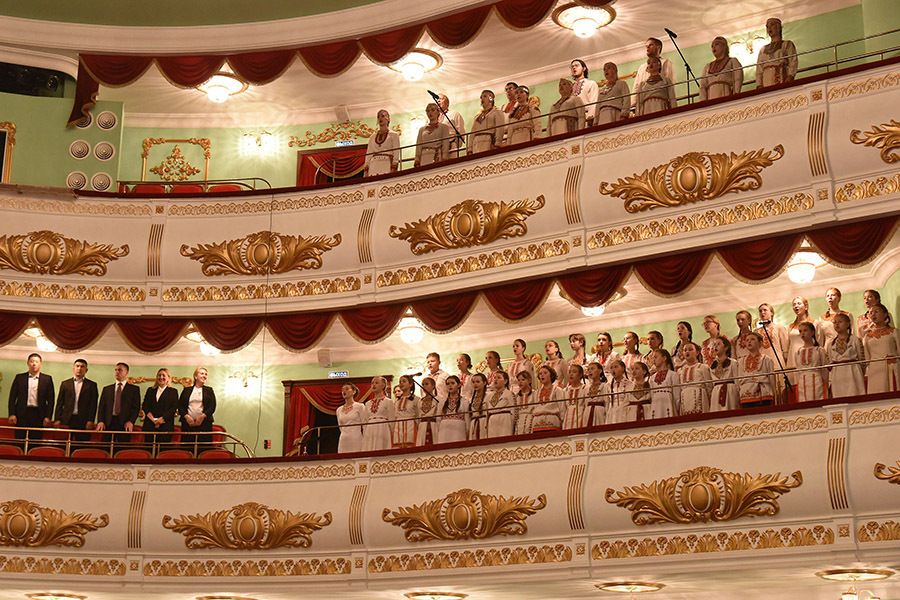 Исполнители Всемарийского детского хора, впервые принимающие участие в торжественной церемонии вступления в должность избранного Главы Республики Марий Эл, исполнили гимны Российской Федерации и Республики Марий Эл.