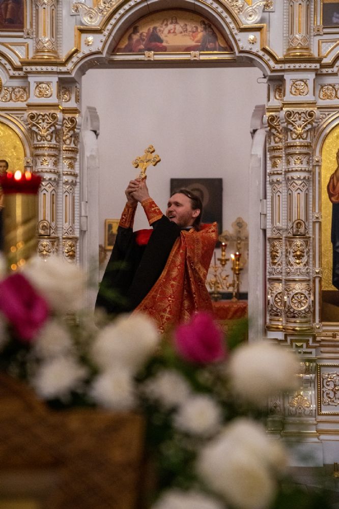 С проповедью к собравшимся обратился клирик Воскресенского собора иерей Димитрий Лукьянов:
