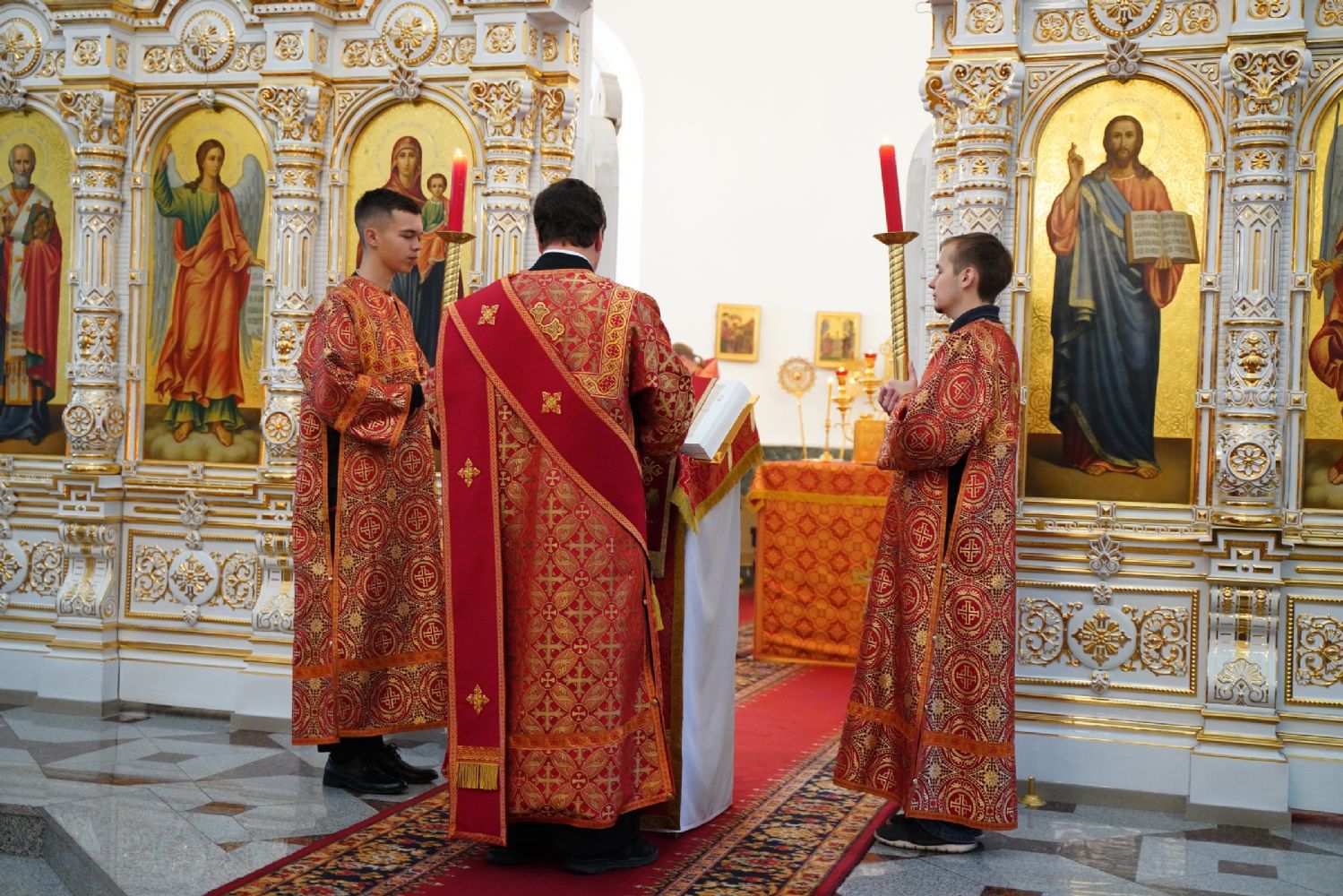 Литургию возглавил секретарь Йошкар-Олинского епархиального управления иеромонах Серафим (Пасанаев). Ему сослужили настоятель собора иерей Алексий Кирюшкин, ключарь Благовещенского кафедрального собора протоиерей Сергий Поглазов и духовенство храмов г. Йошкар-Олы. Песнопения исполнял хор Воскресенского собора под управлением Алисы Вылегжаниной.