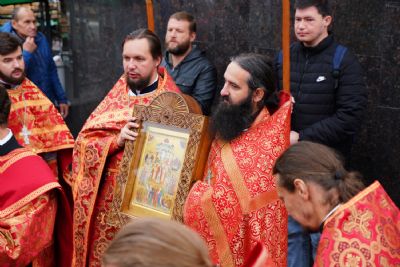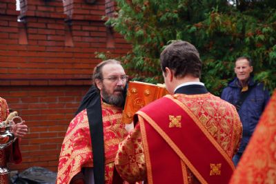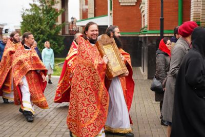 В честь престольного праздника за богослужением читались пасхальные часы, звучали избранные пасхальные песнопения. После Литургии прошел крестный ход вокруг храма со чтением Евангелия и кроплением святой водой.