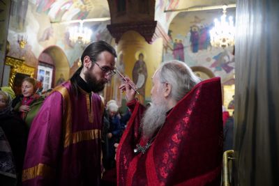 Всенощное бдение накануне праздника возглавил настоятель собора протоиерей Евгений Кутырев в сослужении клириков прихода и настоятеля храма в честь иконы Божией Матери «Умиление» п. Визимьяры иерея Игоря Лебедева.