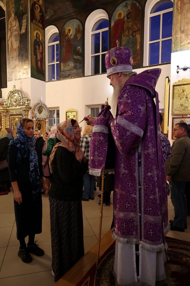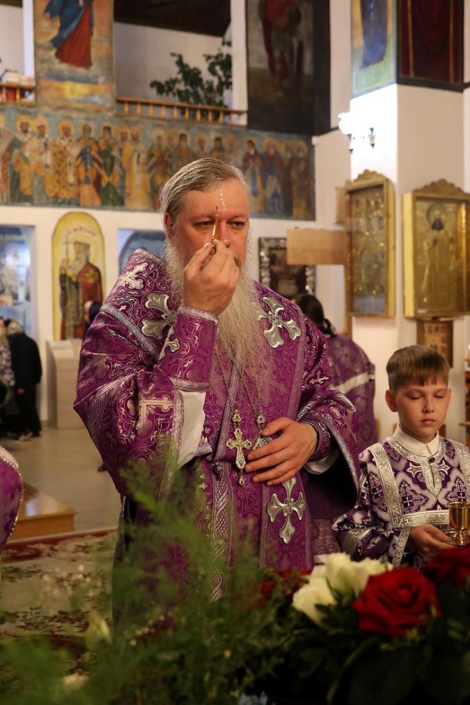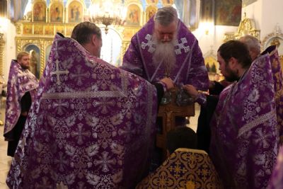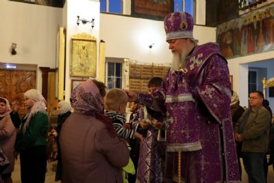 После чина Воздвижения и поклонения Кресту епископ Феофан совершил помазание верующих освященным елеем.