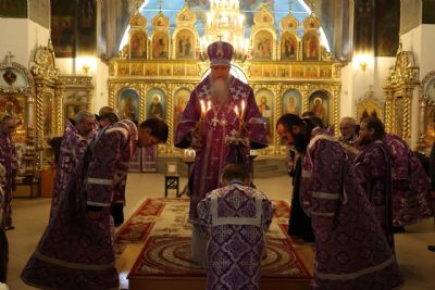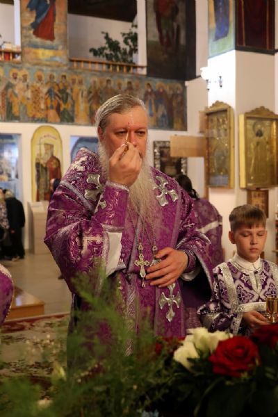 Его Преосвященству сослужило духовенство собора, песнопения исполнял архиерейский хор.