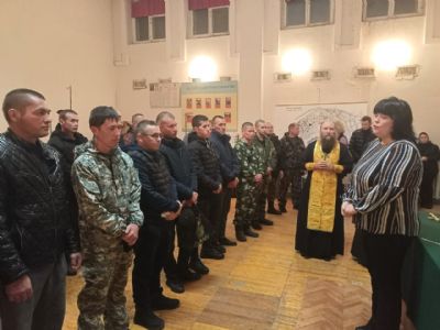 В Военном комиссариате города клирики Горномарийского благочиния совершили молебен на благословение воинов, окропили их святой водой, каждому вручили иконки святителя Николая Чудотворца, молитву православного воина и пояса с текстом 90-го псалма «Живый в помощи…».
