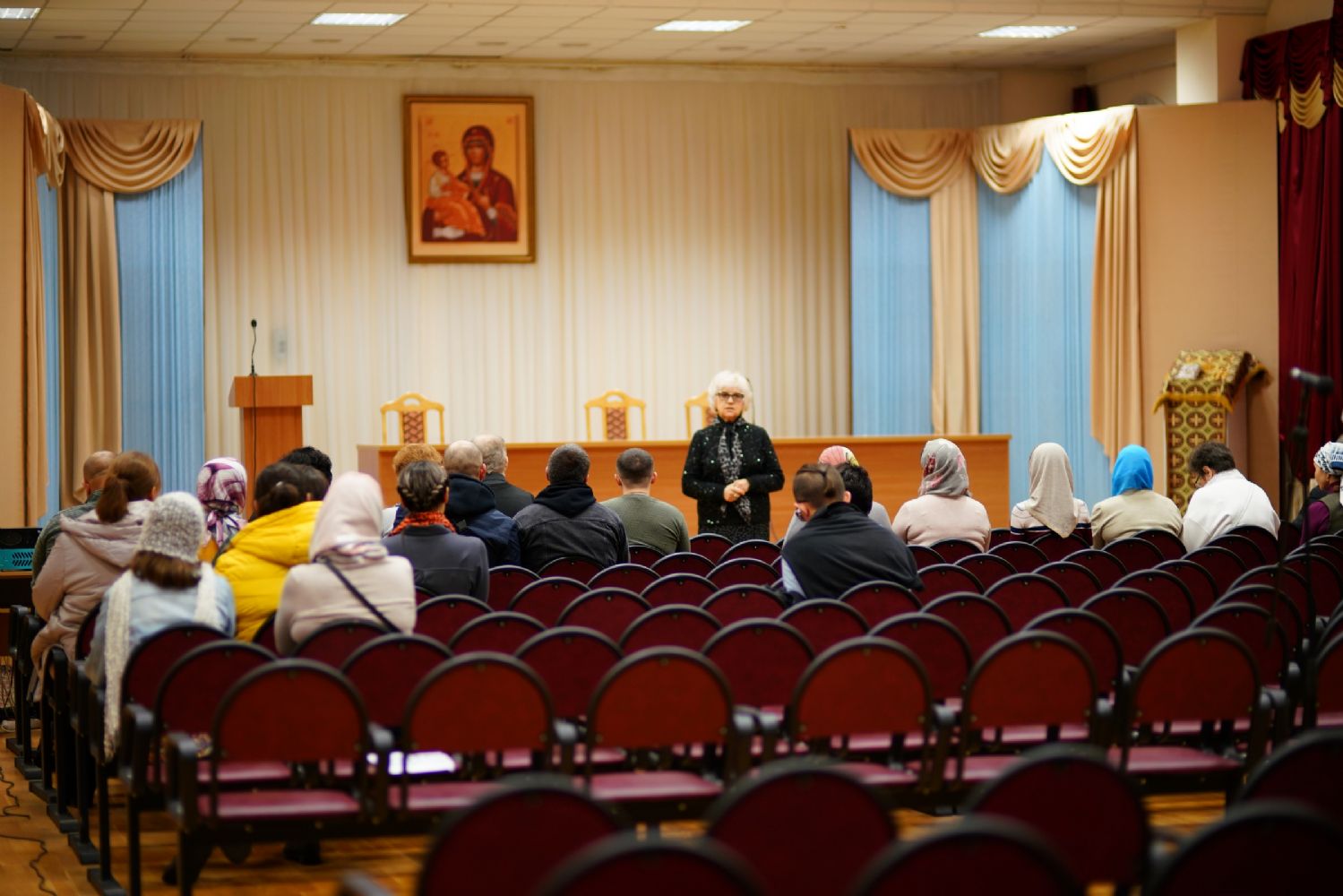 Завуч Курсов Виктория Яковлевна Сарынина также проинформировала преподавателей, что многие курсанты еще до начала обучения уже встретились друг с другом на различных мероприятиях, которые им предложили работники культуры: 4 августа мы посетили премьеру спектакля «Петр и Феврония», реализованного в рамках молодежной программы «Вера и дело» с использованием гранта Президента Российской Федерации на развитие гражданского общества, предоставленного Фондом президентских грантов. 22 сентября Республиканский театр кукол пригласил на творческую встречу с художниками и конструкторами театра Александром и Розой Паткиевыми в Музей истории города, где создатели кукол поделились творческим опытом и рассказали, какими знаниями должен обладать мастер, чтобы у зрителей спектакля возникло ощущение, что перед ним оживает сказка – а это и знание столярного дела, и тонкостей декоративно-прикладного искусства, и тонкое художественное чутьё. Затем завуч Курсов пригласила преподавателей на молебен, который был назначен на 2 октября.
