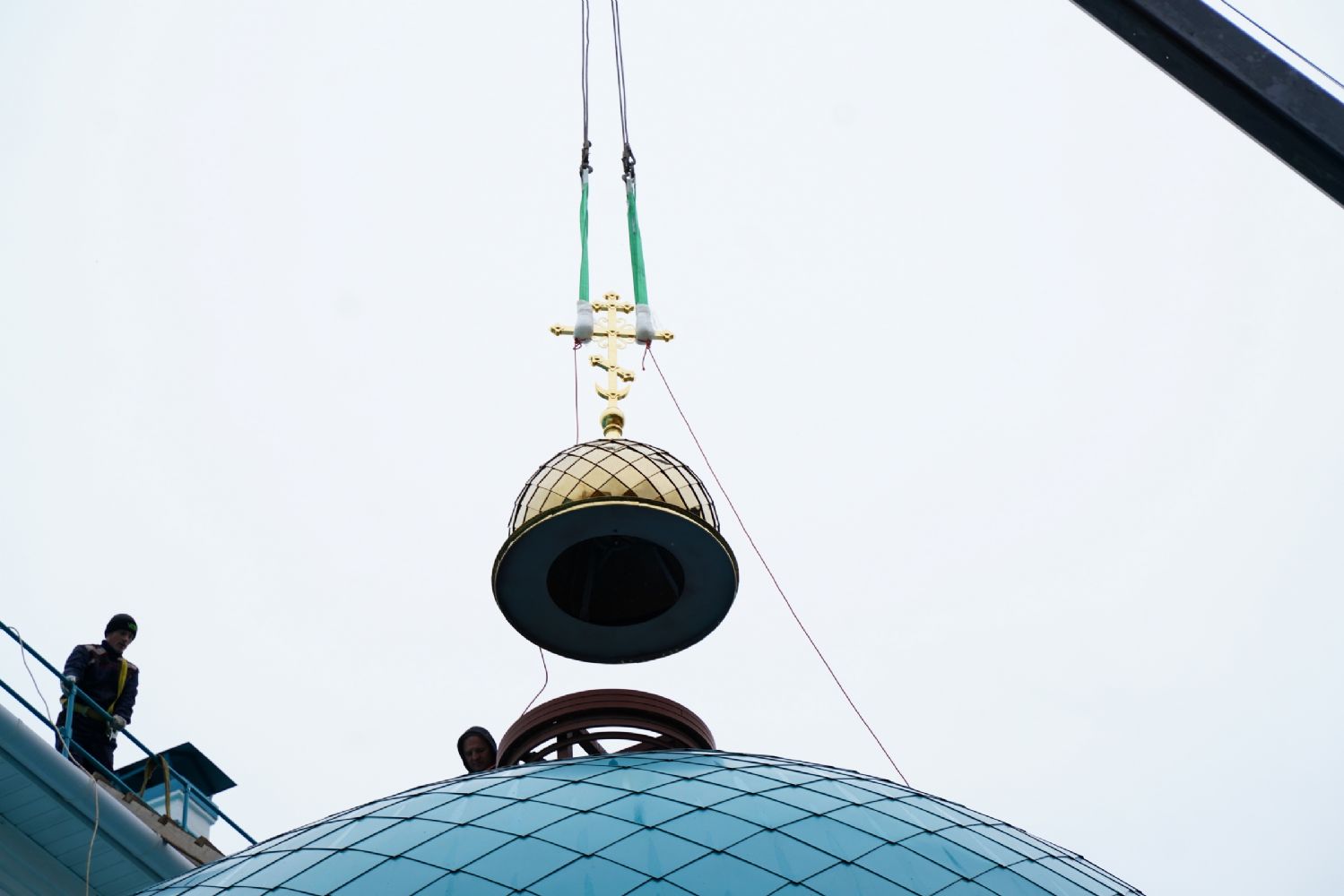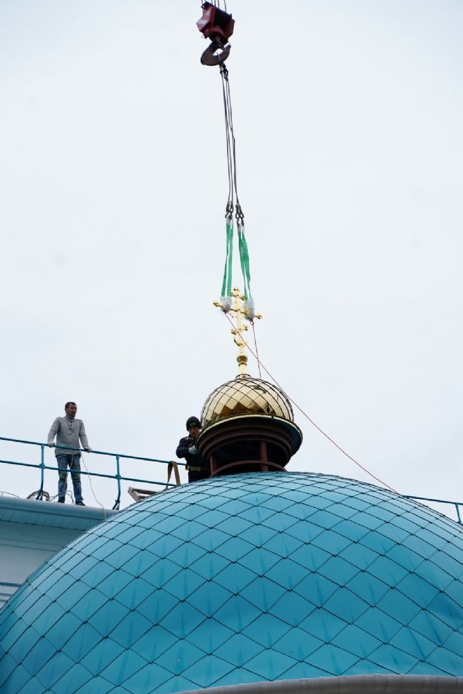 4 октября на крестильный храм, расположенный на территории строящегося Тархановского храма, установили крест.