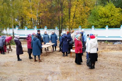 Полным ходом идет и благоустройство прилежащей территории. Вся она огорожена красивым рельефным забором. Завершается работа над главными вратами, ведущими в храм с улицы Транспортной. Дорожки вокруг храма и административного здания уже подготовлены под покрытие гранитной крошкой. С внешней стороны по улице Речной идет подготовка к обустройству пешеходной дорожки.
