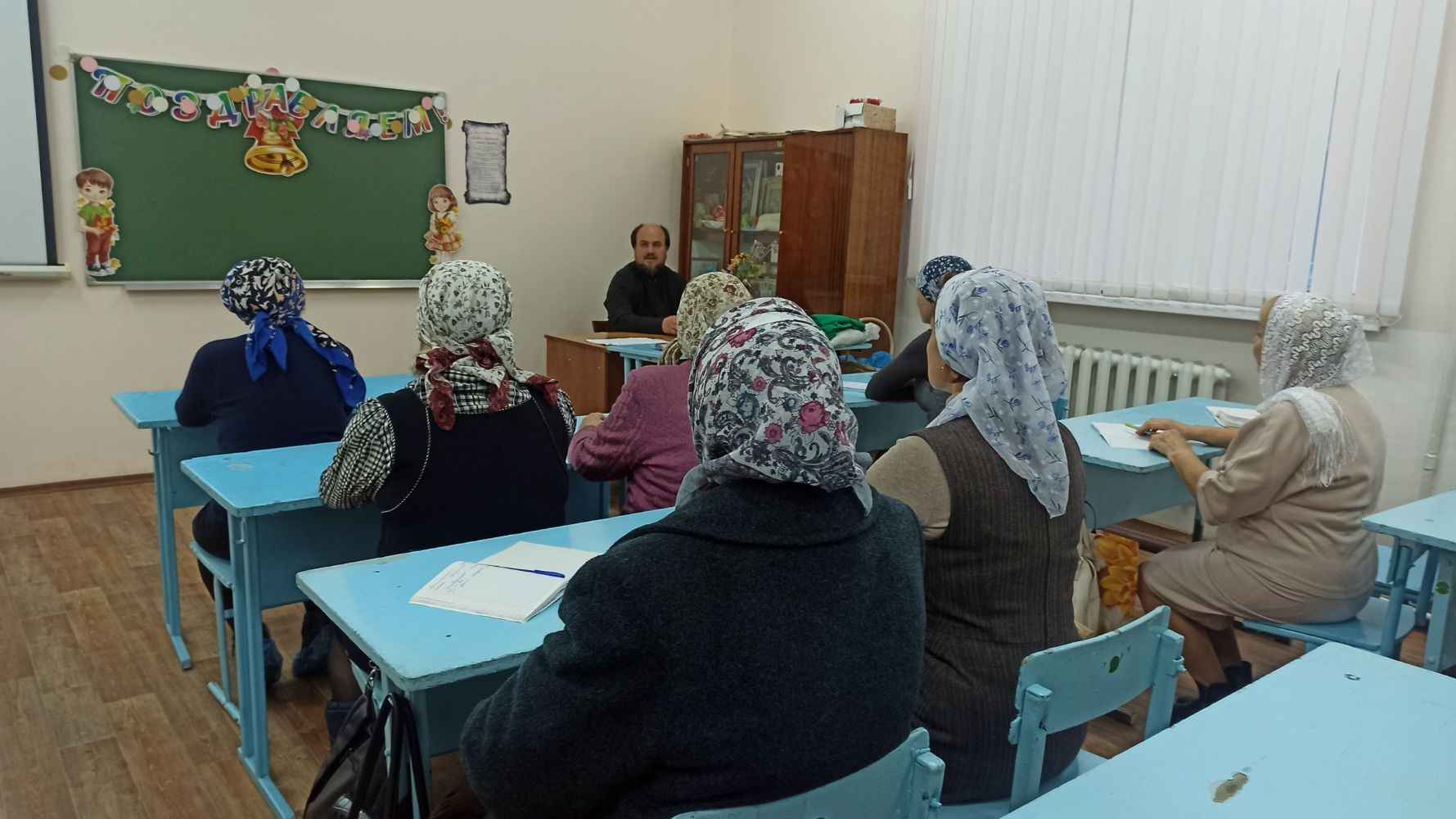 Также с этого дня возобновила свою работу воскресная школа для взрослых. Занятия в школе начинаются в 16 часов. Перед уроками взрослые учащиеся на добрую память сделали общее фото с отцом Николаем. Успехов вам в учебе, наши добрые друзья!