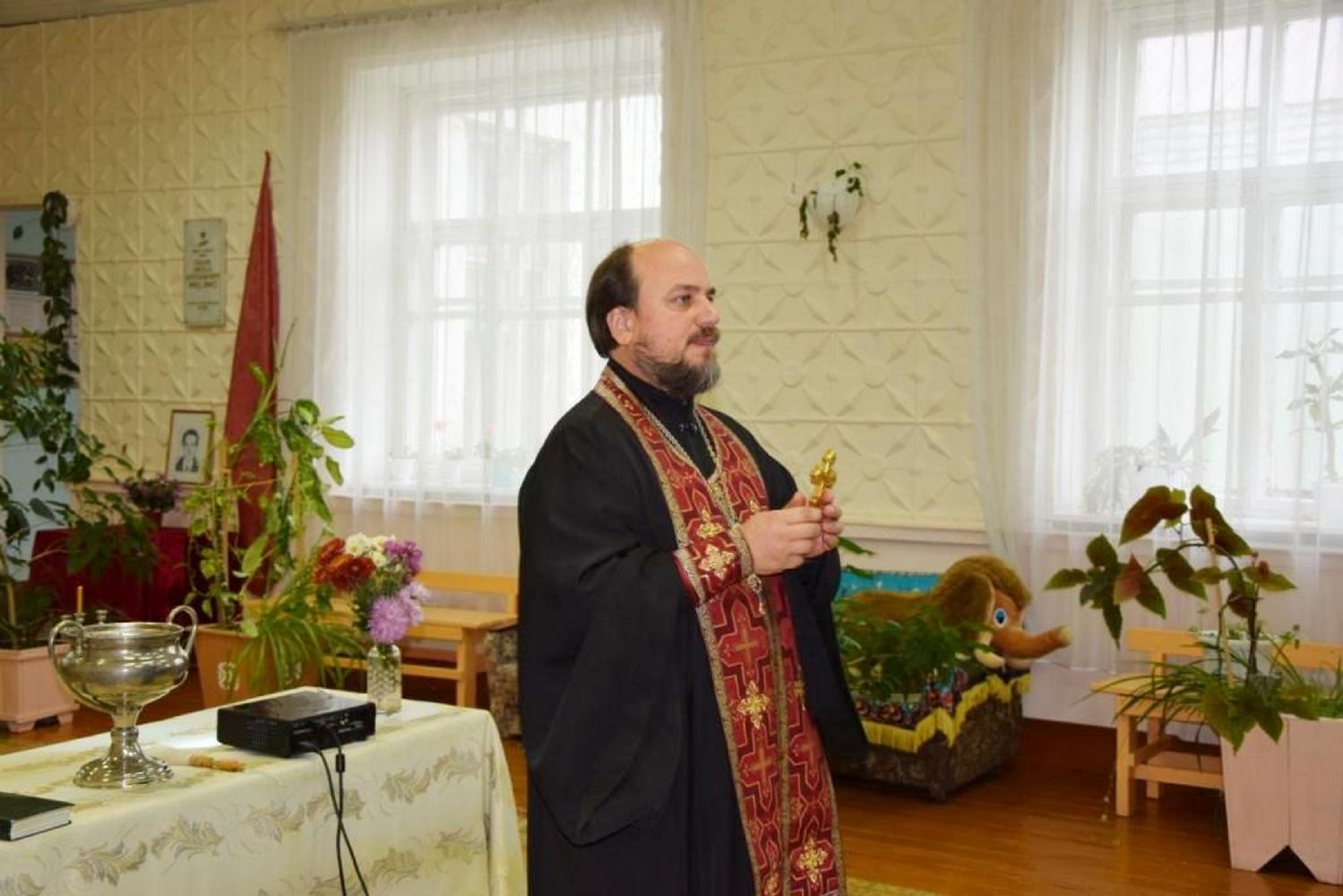 2 октября в полдень нарядные учащиеся и их родители собрались в здании школы, на втором этаже, где размещается районный краеведческий музей, работники которого любезно предоставили экспозиционный зал для проведения школьного праздника. После небольшого вступительного слова и поздравления педагогов с предстоящим празднованием Дня учителя, настоятель храма протоиерей Николай Ярошевич совершил молебен на начало обучения.