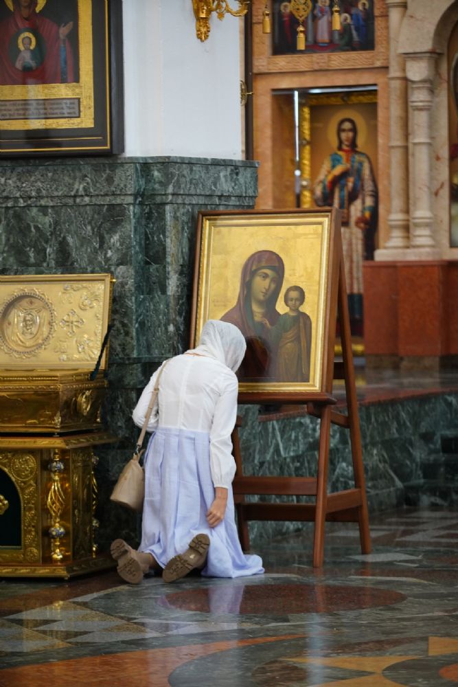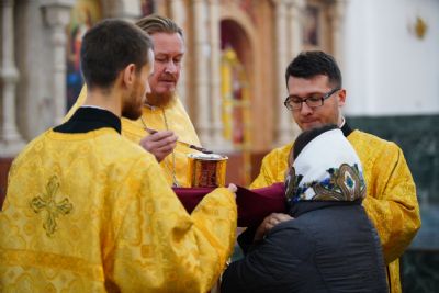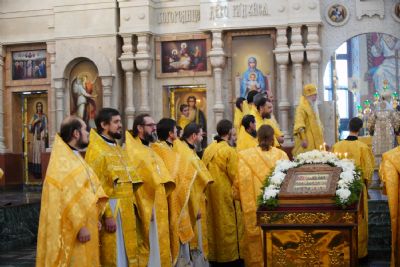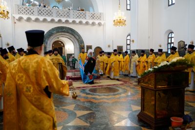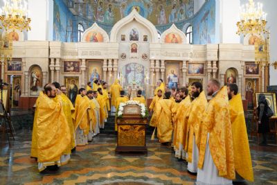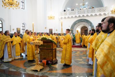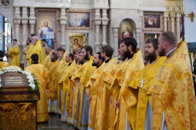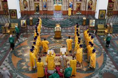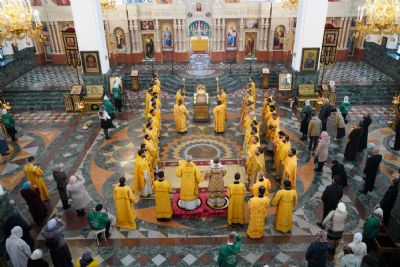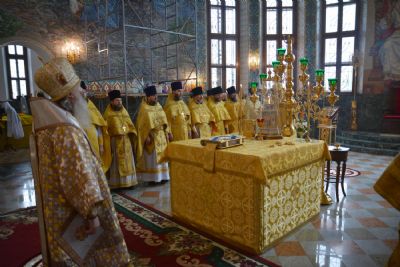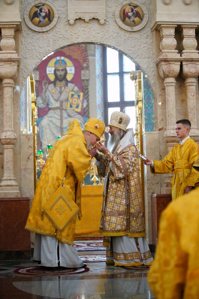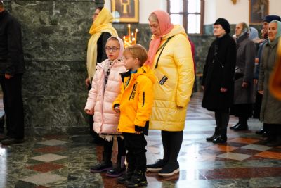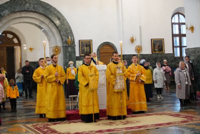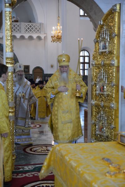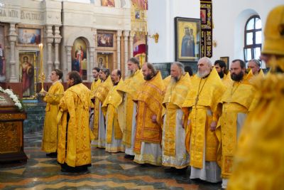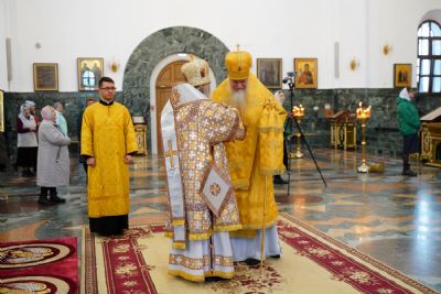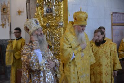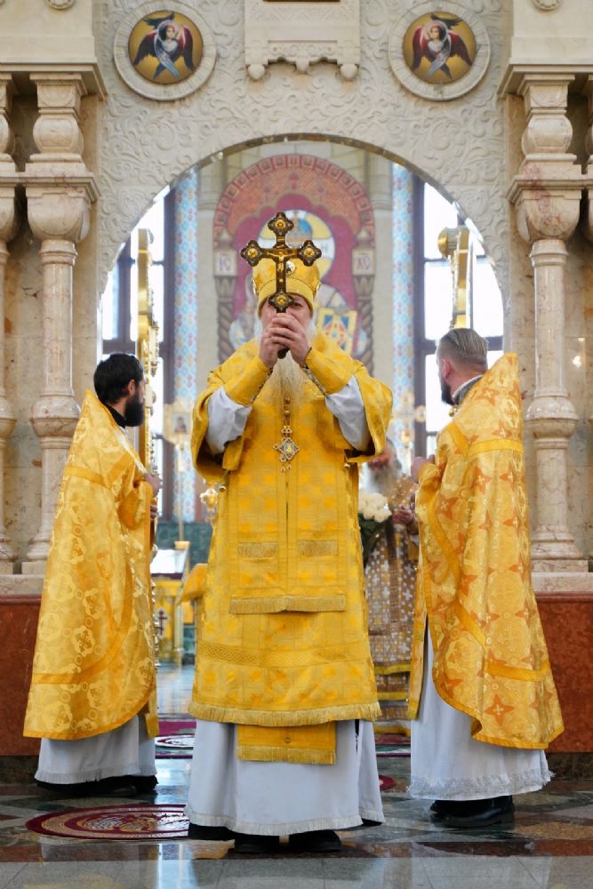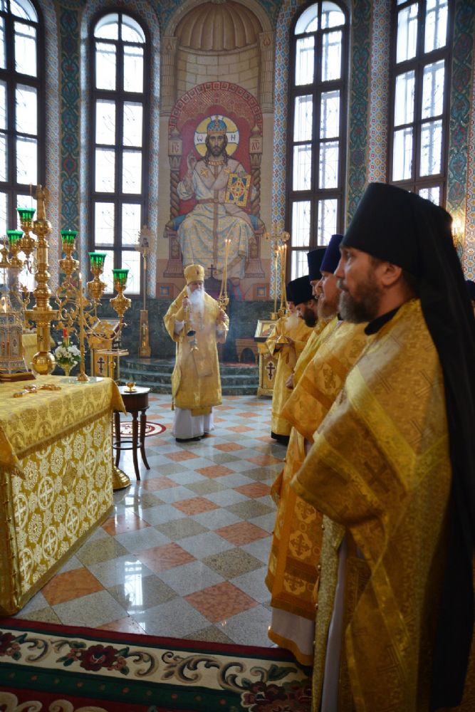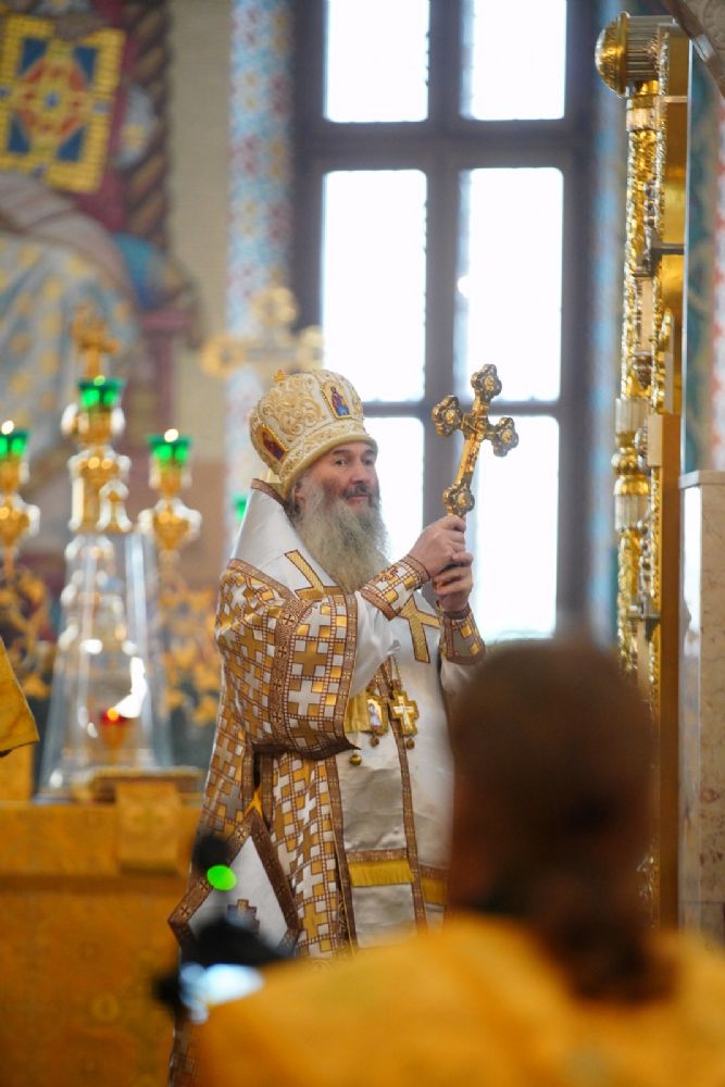 После Литургии была вознесена соборная благодарственная молитва ко Господу и пропето многолетие архипастырям, пастырям и прихожанам Марийской митрополии.
