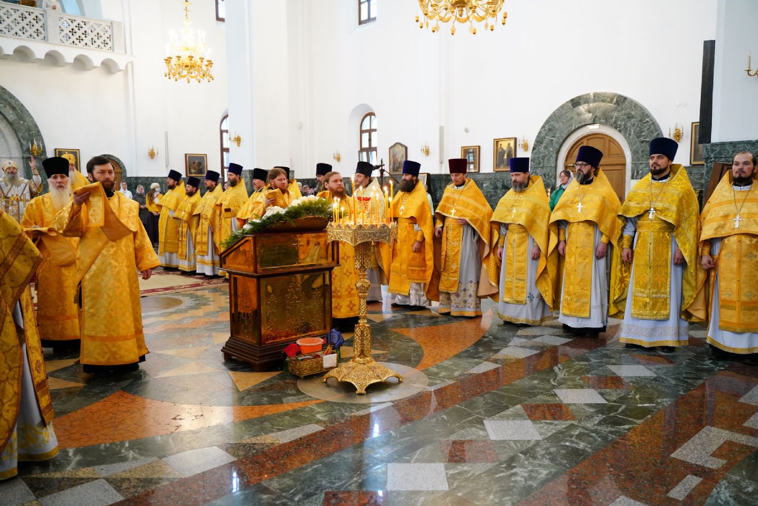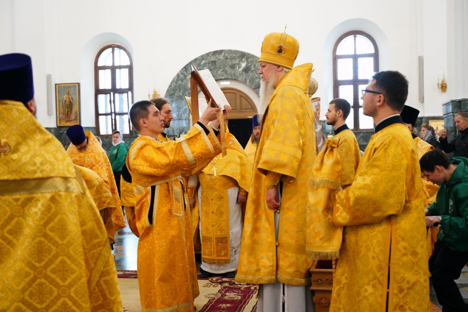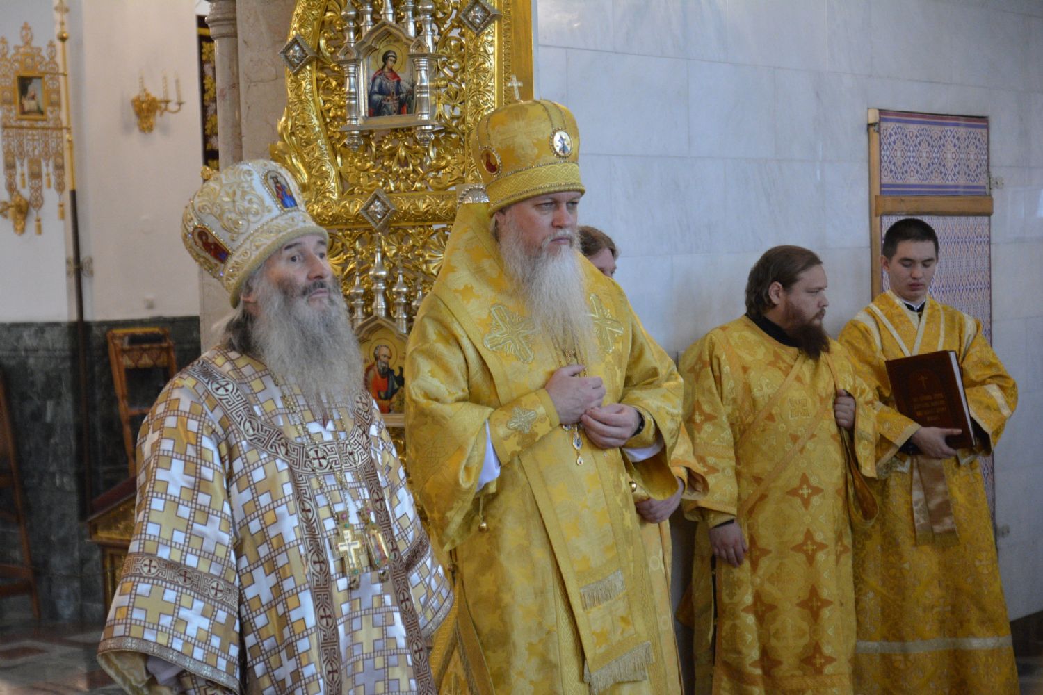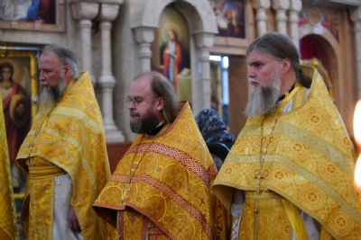 Архипастырям сослужило духовенство Йошкар-Олинской и Волжской епархий. Песнопения исполняли детско-юношеский хор «Благовест» под управлением Татьяны Черновой и хор Троицкого храма г. Йошкар-Олы под руководством регента Анны Ярошевич.