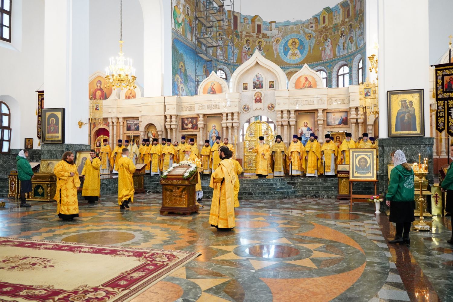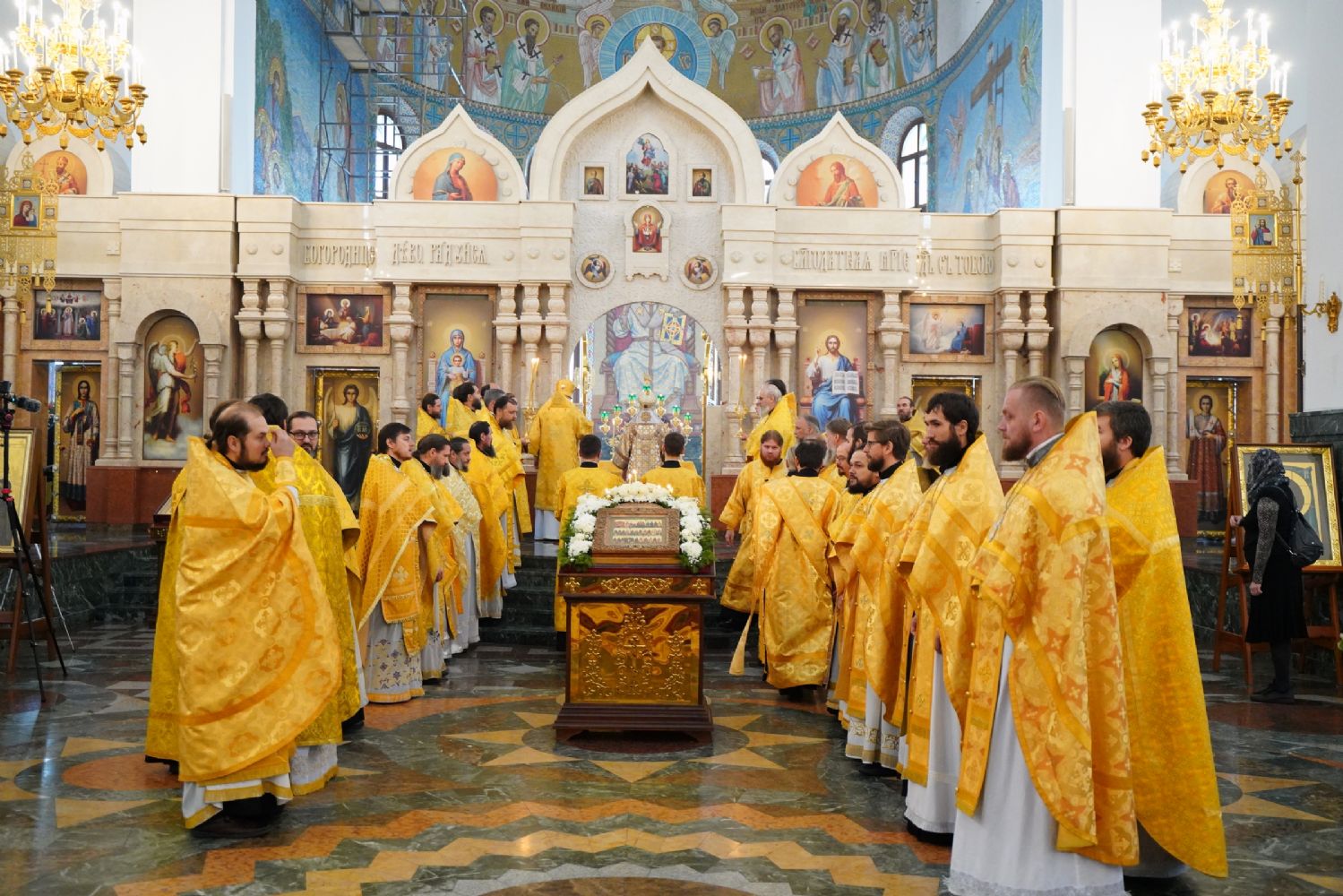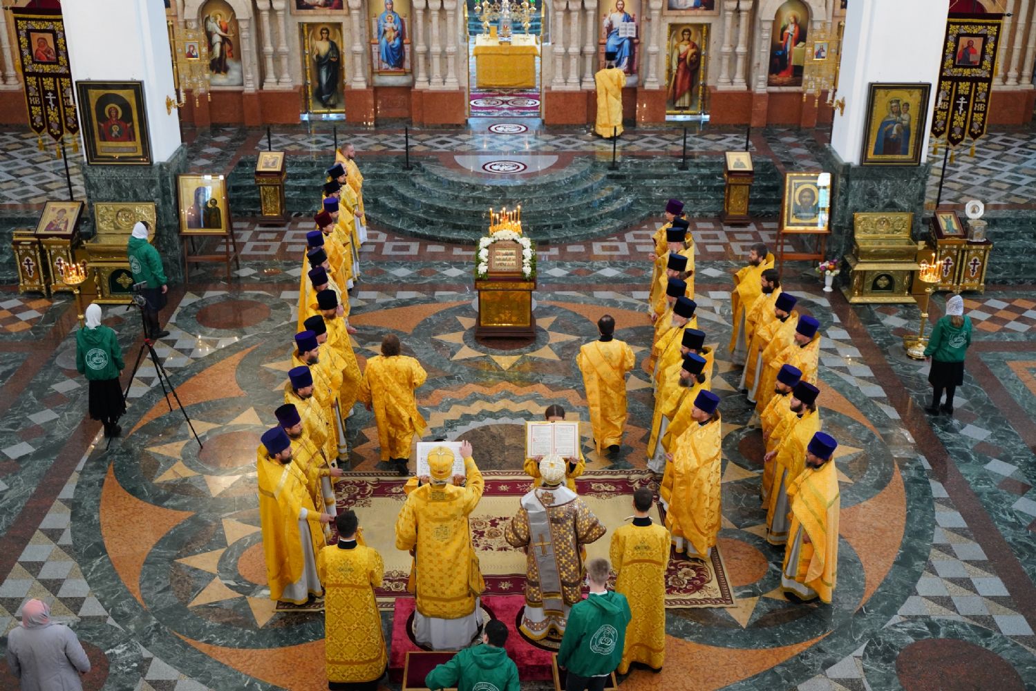 Архипастырям сослужило духовенство Йошкар-Олинской и Волжской епархий. Песнопения исполняли детско-юношеский хор «Благовест» под управлением Татьяны Черновой и хор Троицкого храма г. Йошкар-Олы под руководством регента Анны Ярошевич.