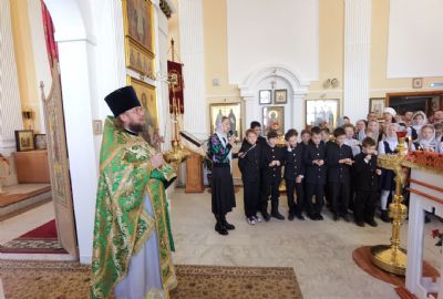 Праздничную Божественную литургию совершил настоятель храма и директор гимназии протоиерей Евгений Сурков. А после службы состоялась традиционная церемония посвящения первоклассников в гимназисты.