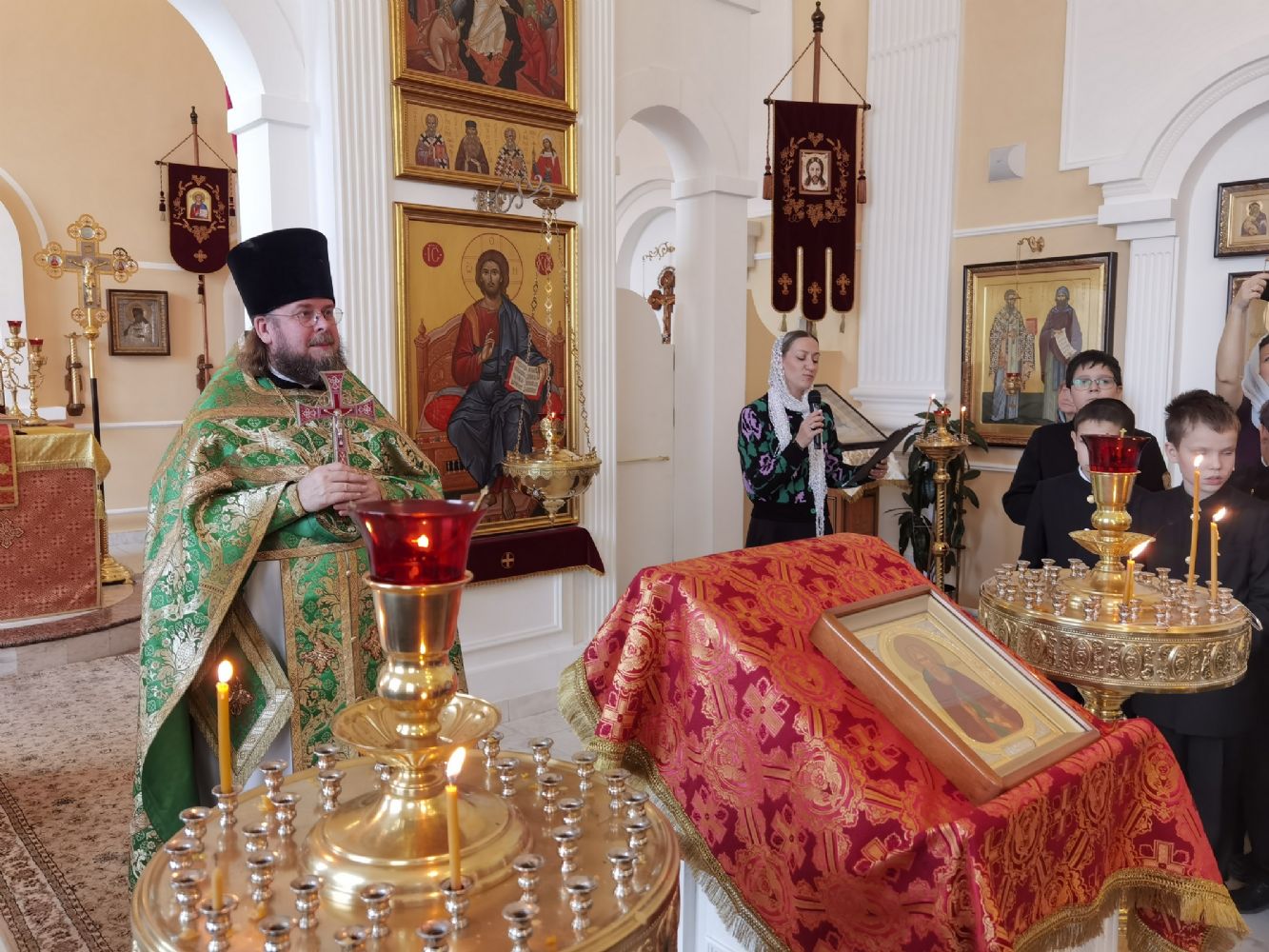 Отец Евгений поздравил всех ребят, пожелал им быть старательными в учебе, послушными родителям и педагогам, чтобы достойно носить имя покровителя гимназии, преподобного Сергия.