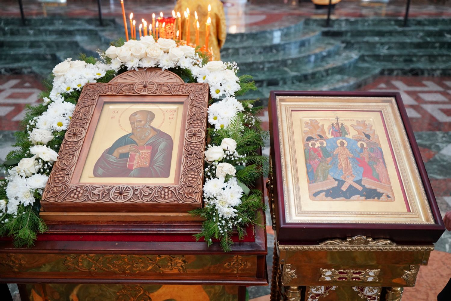 Посмотрим на себя – вот мы приходим в храм Божий, нам созданы все условия для искренней молитвы, обращенной ко Господу, а где наши мысли, где наши сердце, чем оно наполнено? Мы телом стоим на службе, а мыслями бродим где угодно, в сердце нашем нет смирения и страха Божия, мы не осознаем, перед Кем мы предстоим... Так пусть же каждый из нас сегодня, обращаясь к апостолу Иоанну Богослову, испросит у него той внутренней духовной искренности и любви, которую он возымел к Господу нашему Иисусу Христу и Его Пречистой Богоматери».