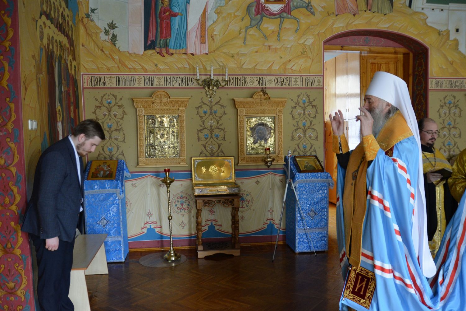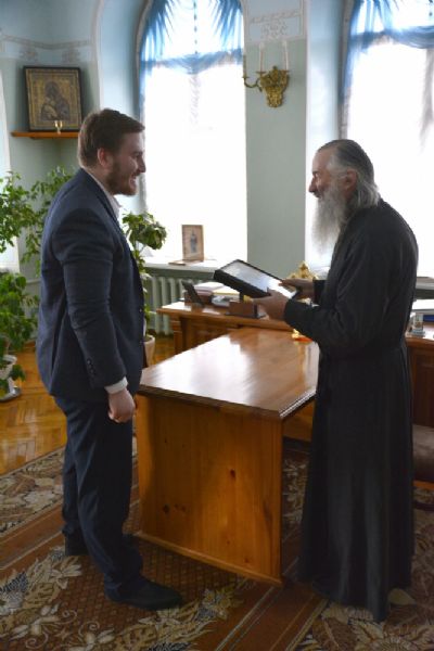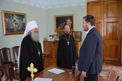 В благословение митрополит Иоанн вручил Данилу Булычеву икону святых Жен-мироносиц и пожелал ему помощи Божией в благом служении, а Данил Николаевич подарил владыке образ преподобного Трифона Вятского, чудотворца, поблагодарил за теплый прием и выразил надежду на плодотворное сотрудничество.