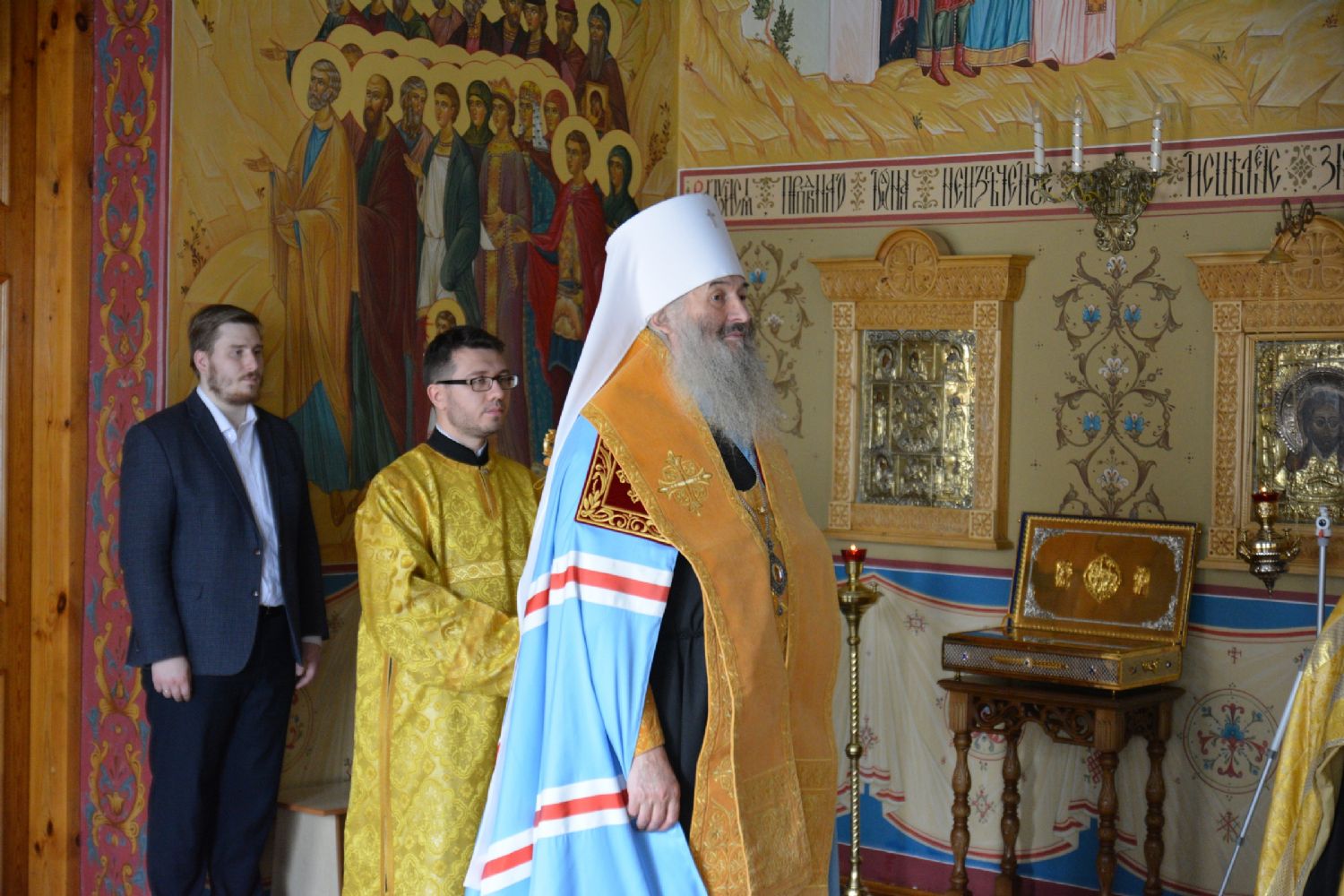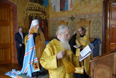 Предварилась эта торжественная церемония молебном на начало всякого доброго дела – его в домовом храме епархиального управления «Троеручица» возглавил митрополит Иоанн. Архипастырю сослужили руководитель епархиального отдела социального служения и церковной благотворительности иерей Алексий Михеев и протодиакон Михаил Козловский.