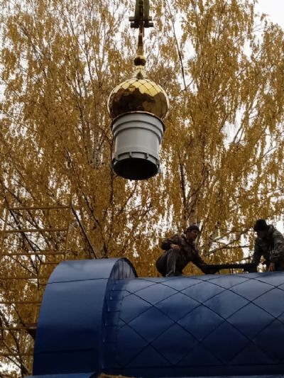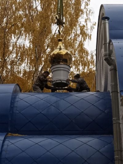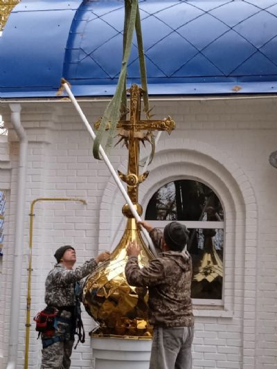 В п. Краснооктябрьский на храм установлены малые купола с крестами 2504