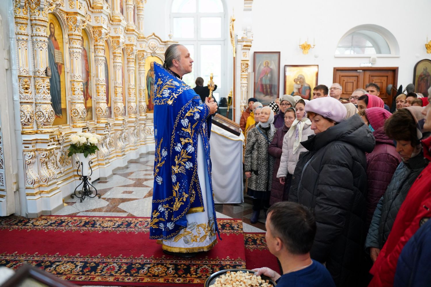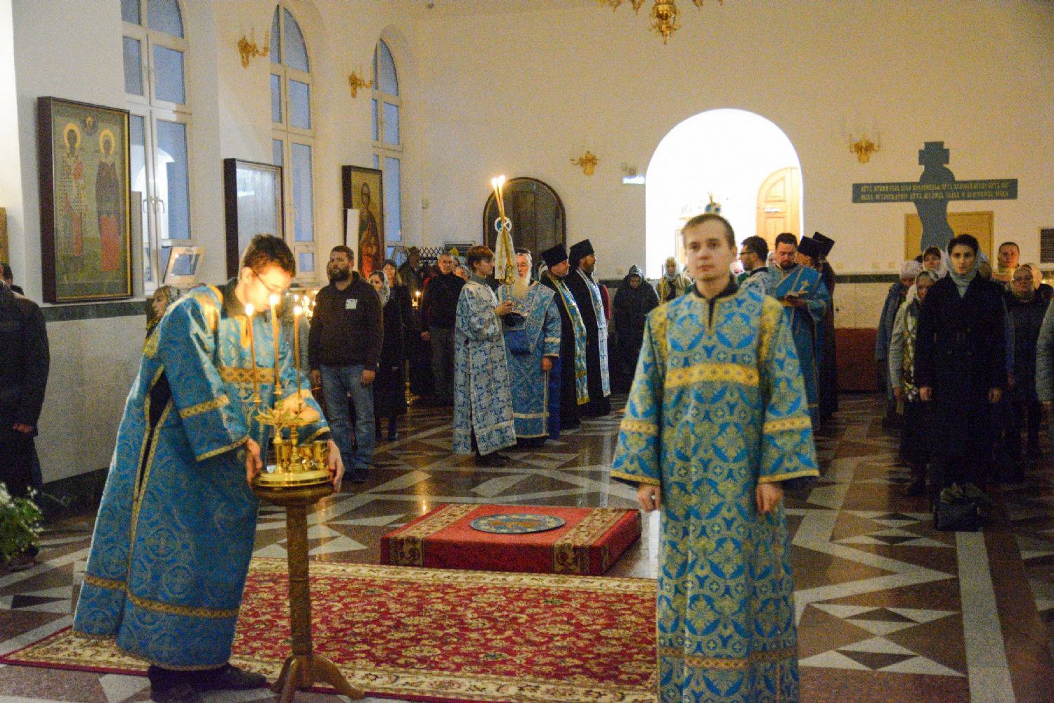 За богослужением читались ветхозаветные паримии из книг Бытия, Пророка Иезекииля и Притчей Соломоновых, прообразующие Пресвятую Богородицу. На литии освящались хлебы, пшеница, вино и елей.