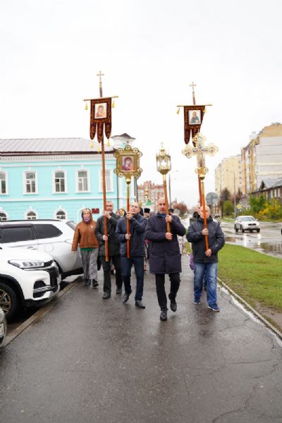 Утром в праздничный день в нижнем Покровском приделе собора была отслужена ранняя Божественная литургия, возглавил которую настоятель иерей Алексий Кирюшкин. Позднюю Литургию в верхнем приделе совершил клирик собора иерей Леонид Вылекжанин, а после ее окончания состоялся крестный ход – священство и верующие прошли к часовне в честь Покрова Пресвятой Богородицы, расположенной на территории Царевококшайского Кремля. К крестному ходу присоединились священство и прихожане Троицкого храма г. Йошкар-Олы. В Покровской часовне был совершен молебен Пресвятой Богородице, возглавил который благочинный Медведевского церковного округа иерей Александр Козлов. Множество верующих соборно вознесли молитвы Пречистой Деве, прося ее заступничества за Святую Русь.