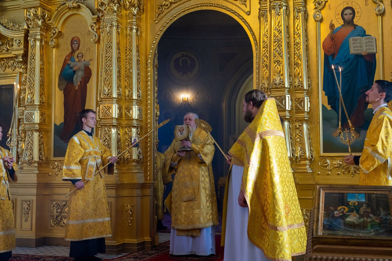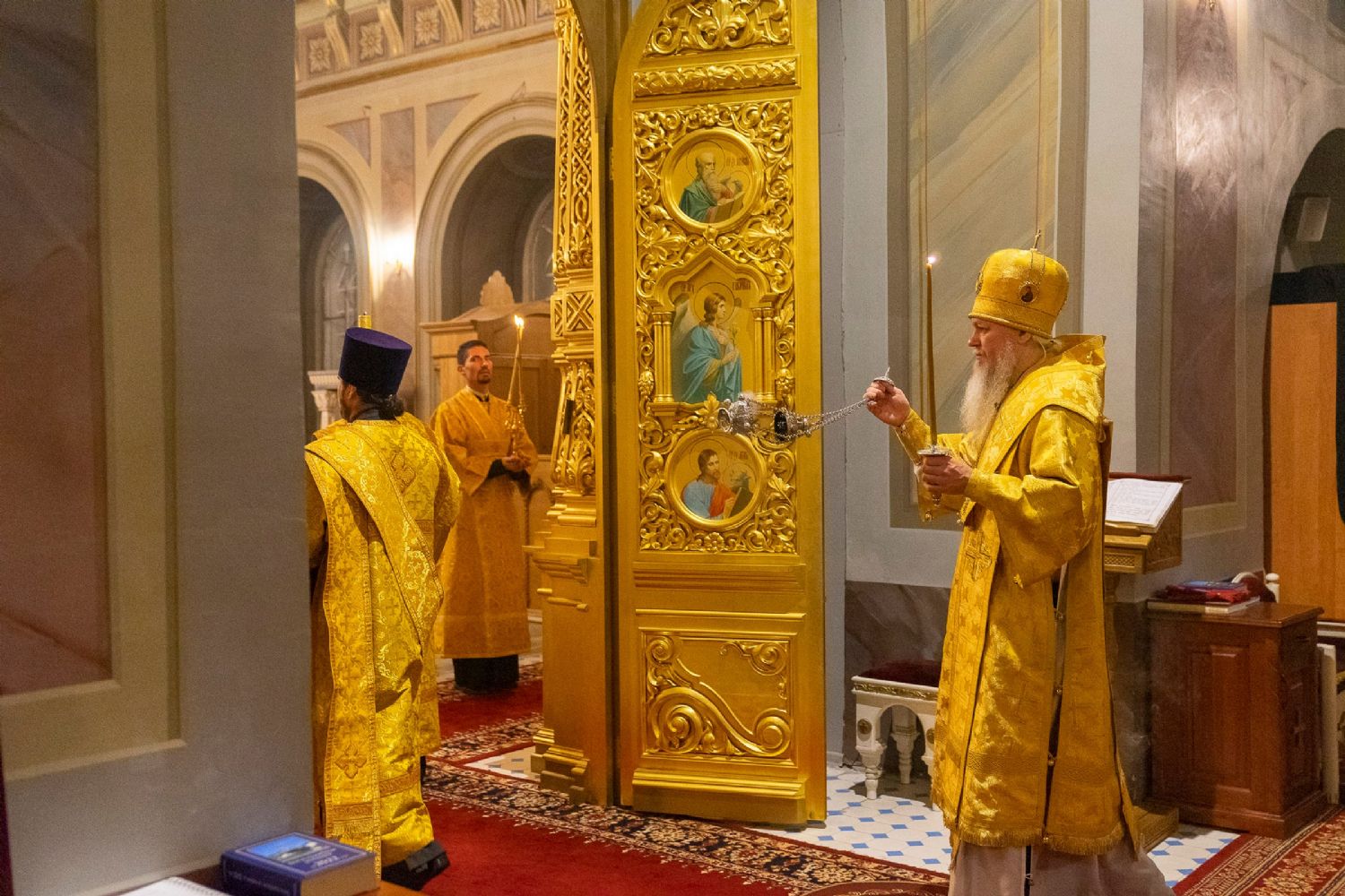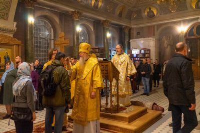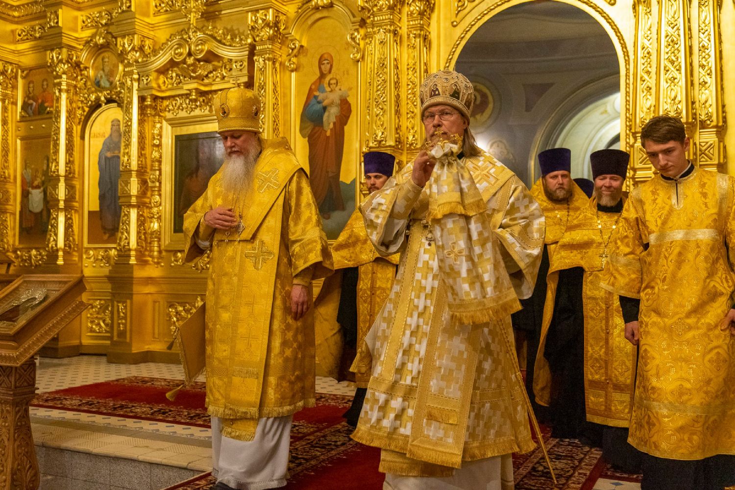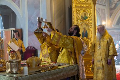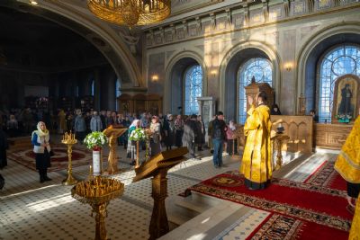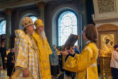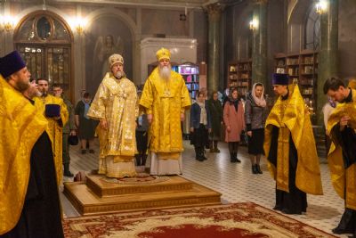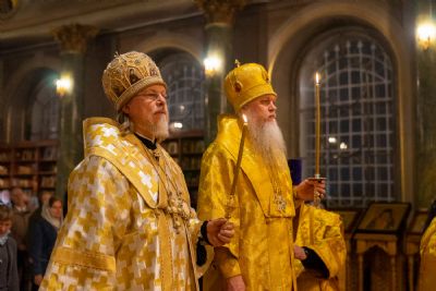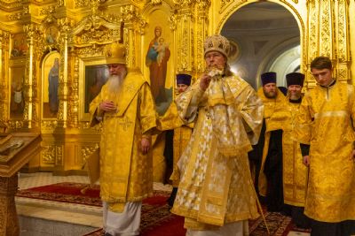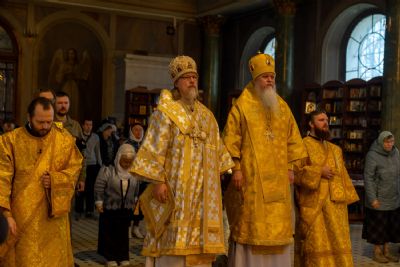 16 октября, в Неделю 18-ю по Пятидесятнице, епископ Волжский и Сернурский Феофан сослужил митрополиту Рязанскому и Михайловскому Марку за Божественной литургией, а накануне вечером – за всенощным бдением в Христорождественском кафедральном соборе г. Рязани.