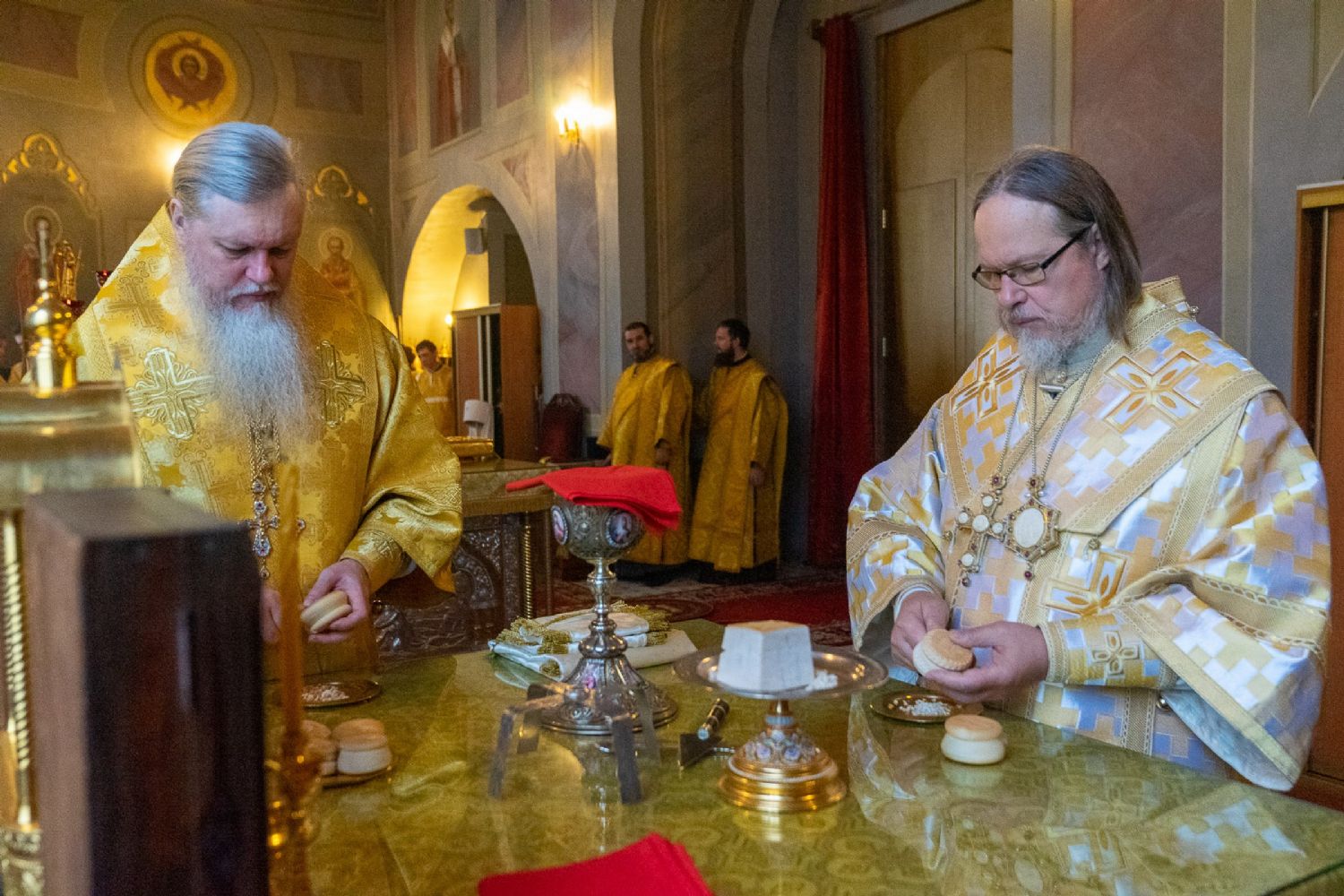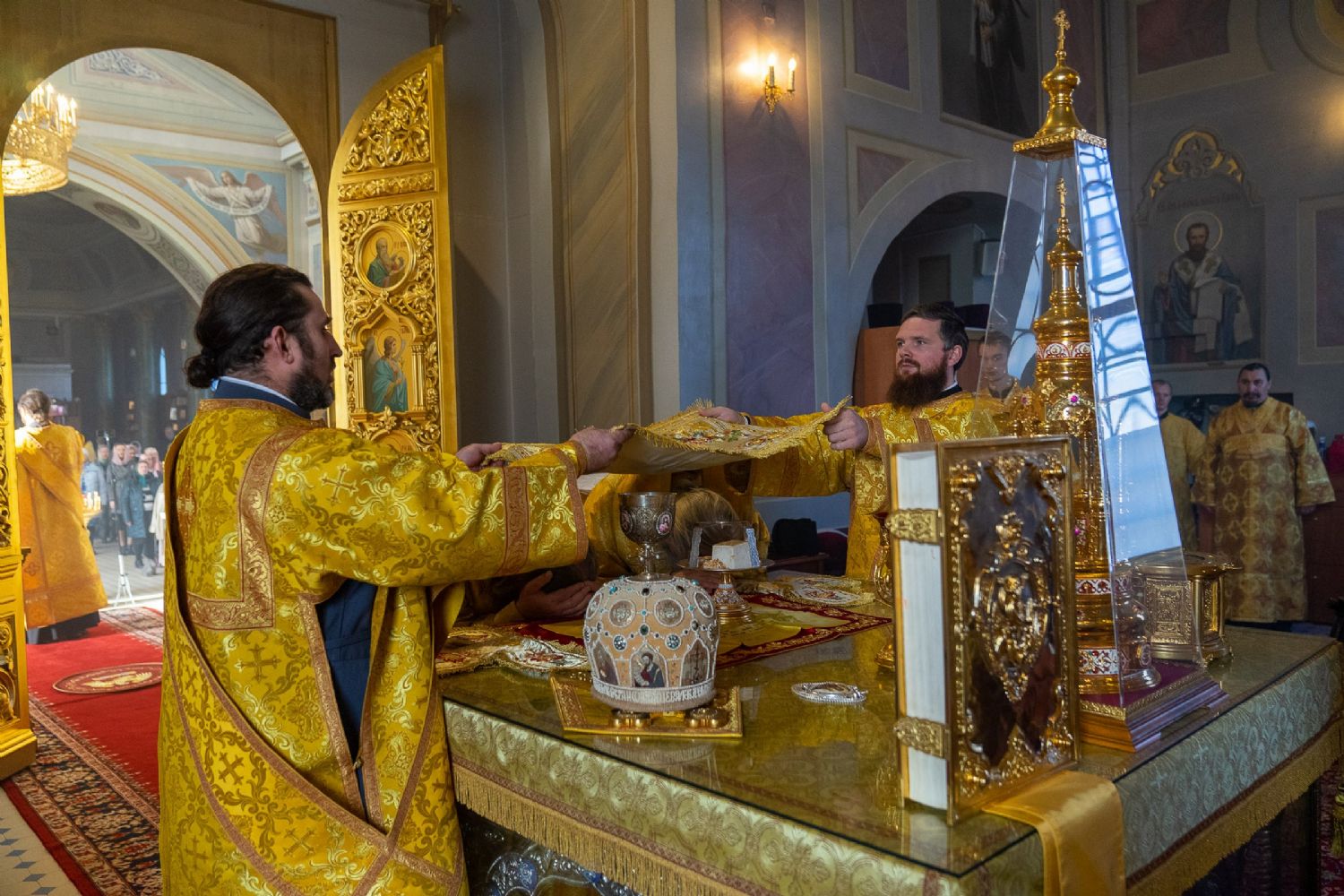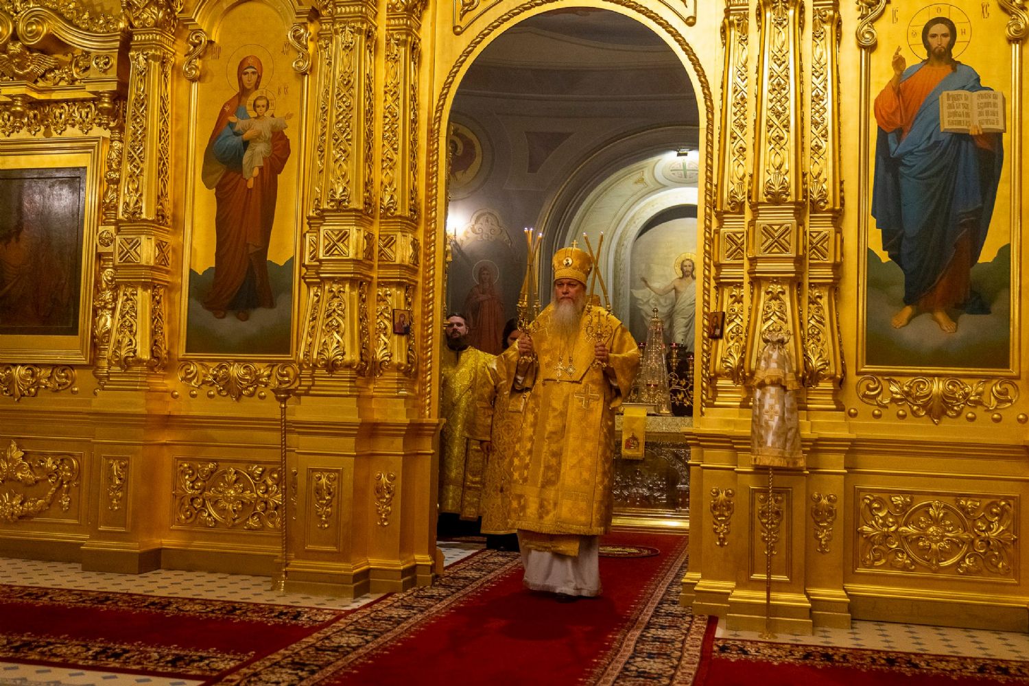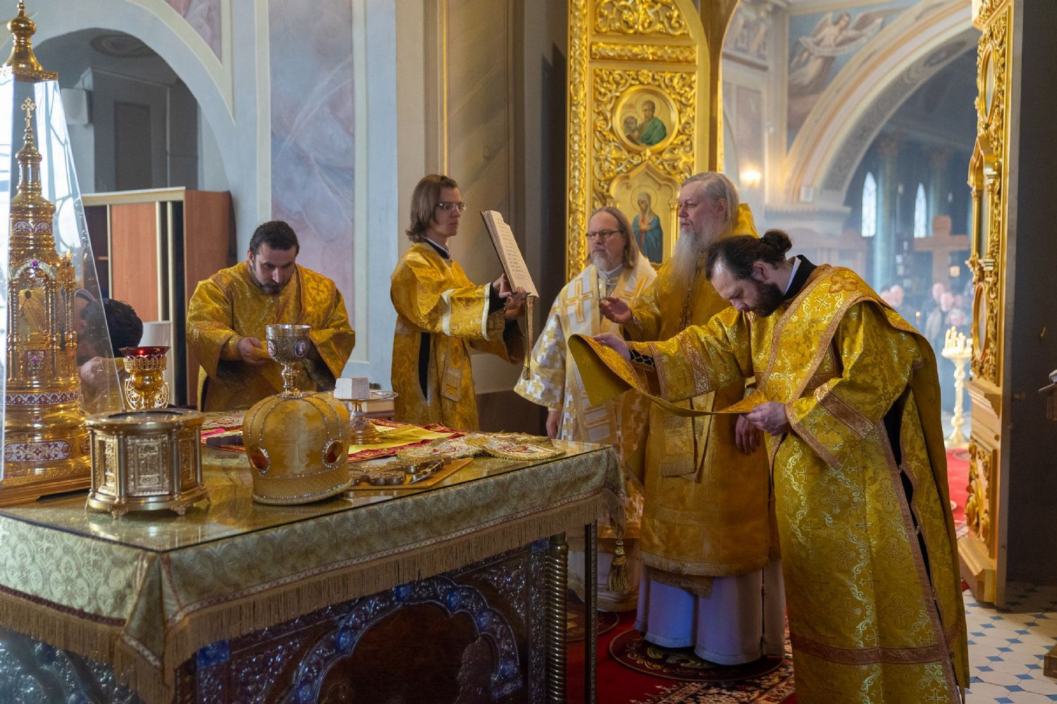 16 октября, в Неделю 18-ю по Пятидесятнице, епископ Волжский и Сернурский Феофан сослужил митрополиту Рязанскому и Михайловскому Марку за Божественной литургией, а накануне вечером – за всенощным бдением в Христорождественском кафедральном соборе г. Рязани.