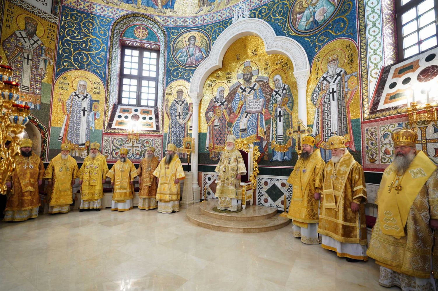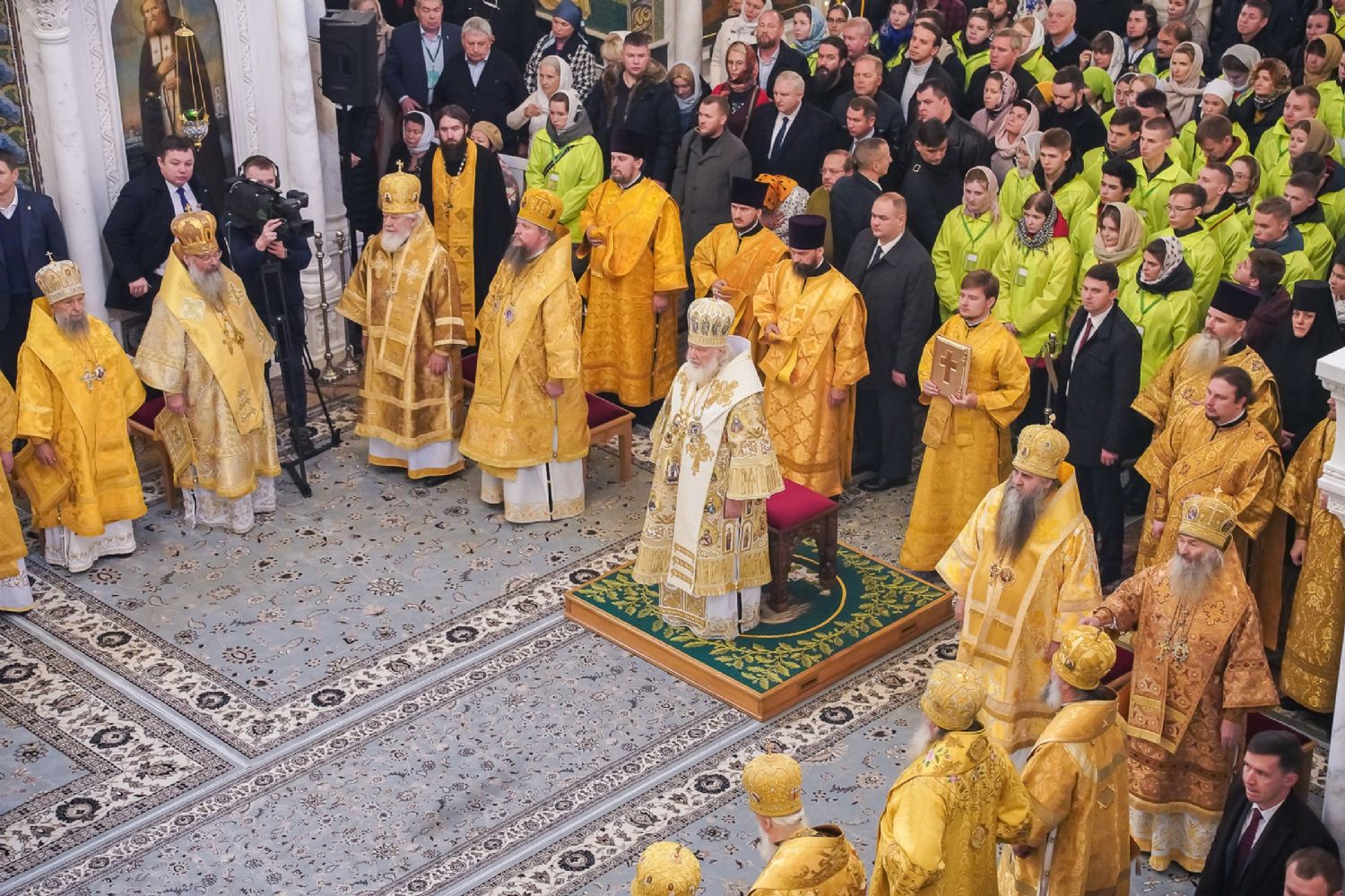 Его Святейшеству сослужили: митрополит Воскресенский Дионисий, управляющий делами Московской Патриархии; митрополит Нижегородский и Арзамасский Георгий; митрополит Самарский и Новокуйбышевский Сергий; митрополит Йошкар-Олинский и Марийский Иоанн; митрополит Казанский и Татарстанский Кирилл; митрополит Иваново-Вознесенский и Вичугский Иосиф; митрополит Саранский и Мордовский Зиновий; архиепископ Витебский и Оршанский Димитрий; епископ Дальнеконстантиновский Филарет; епископ Городецкий и Ветлужский Августин; епископ Выксунский и Павловский Варнава; епископ Сормовский Иннокентий; епископ Лысковский и Лукояновский Силуан; протоиерей Сергий Матвеев, секретарь Нижегородского епархиального управления, ключарь Александро-Невского кафедрального собора Нижнего Новгорода; архимандрит Алексий (Туриков), личный секретарь Святейшего Патриарха Кирилла; духовенство Нижегородской митрополии.