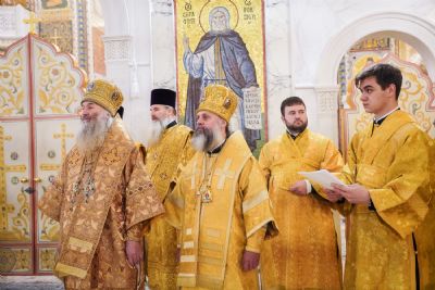 На богослужение из Свято-Троицкого собора обители была принесена рака с честными мощами преподобного Серафима Саровского.