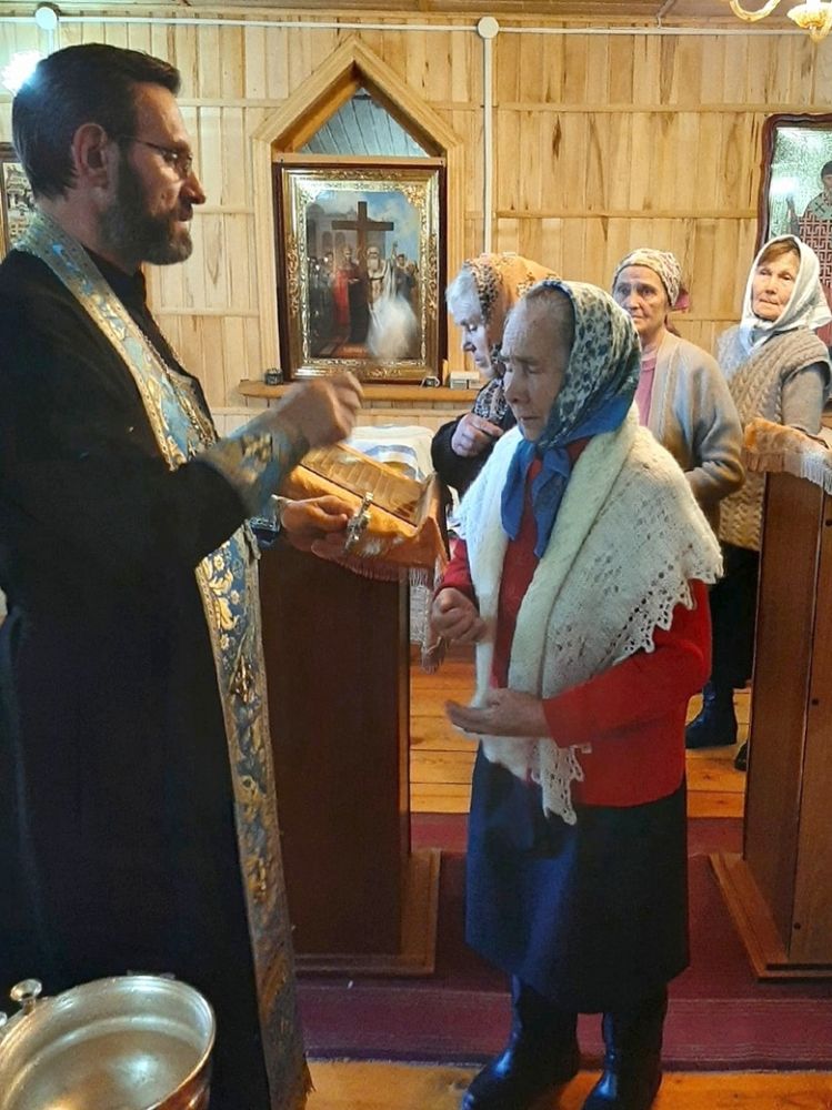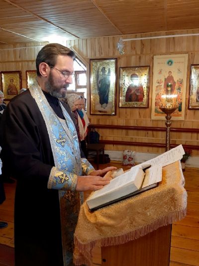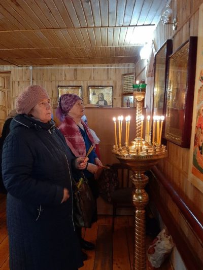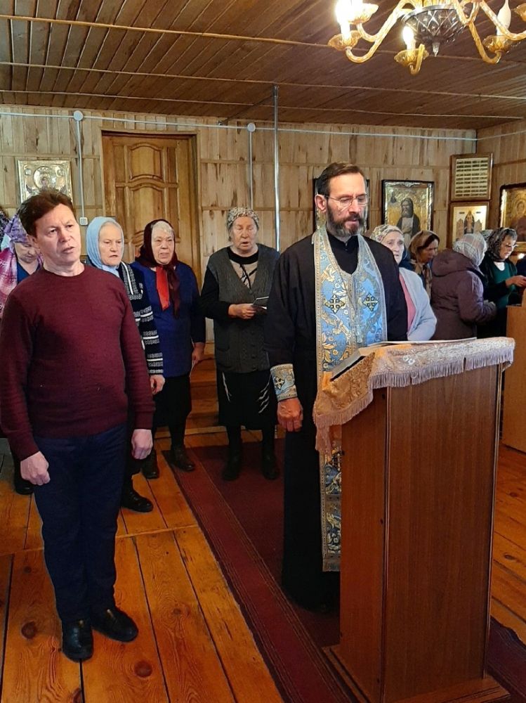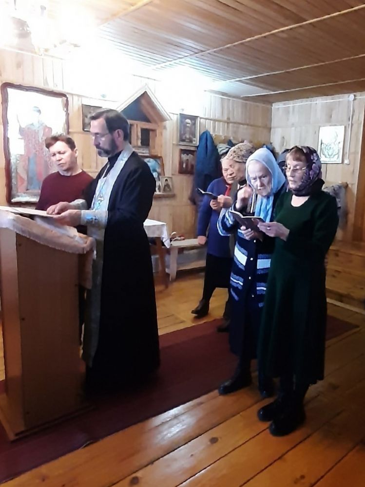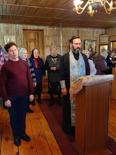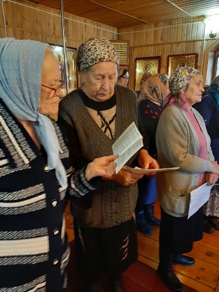 Песнопения молебна и акафиста вместе со священником пели сами прихожане. По окончания молебна священник окропил всех святой водой, поблагодарил за совместное участие в молитве.