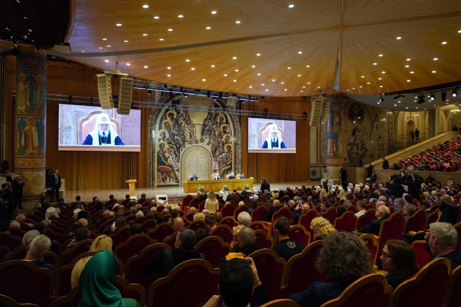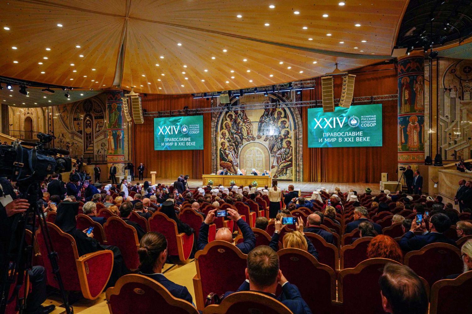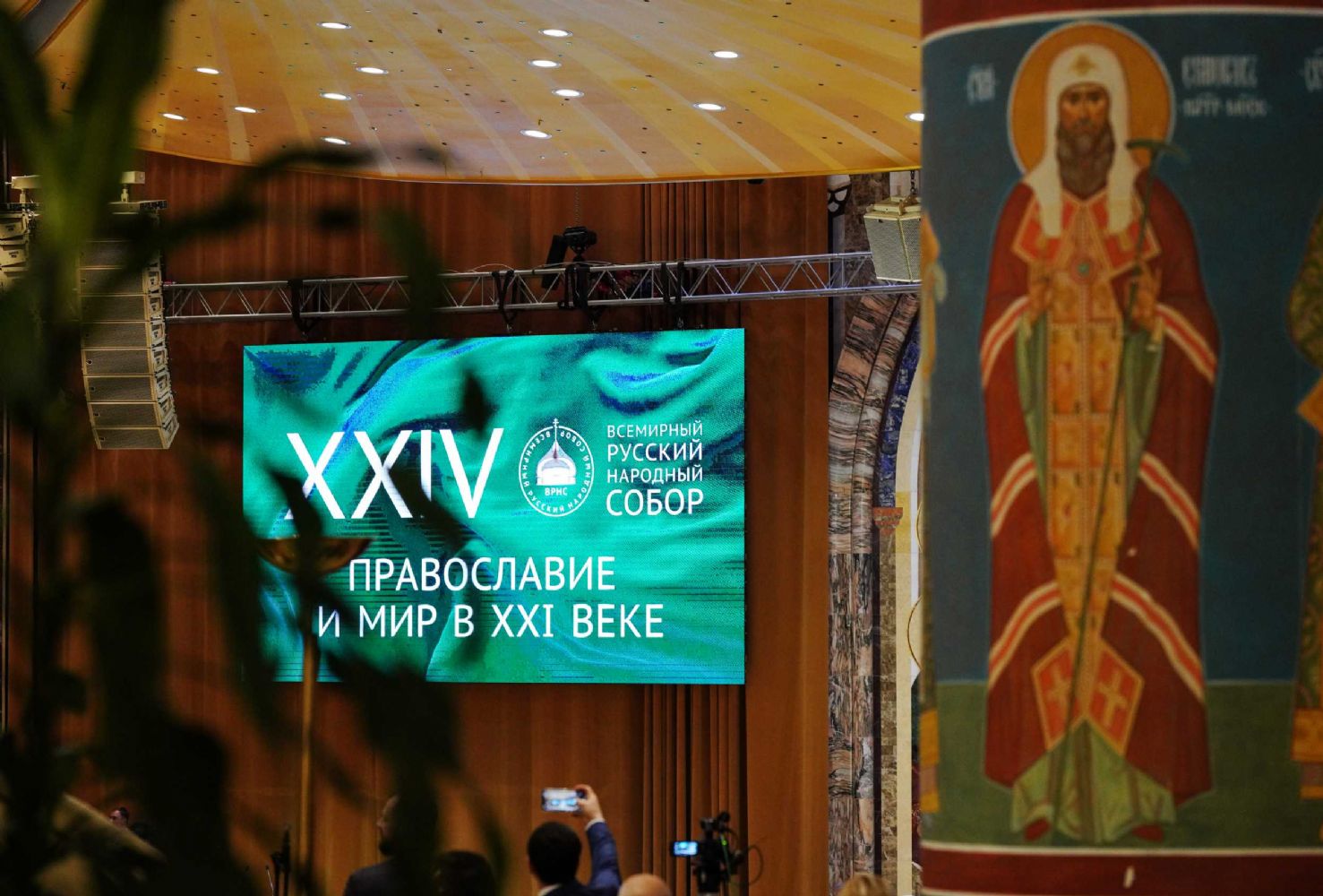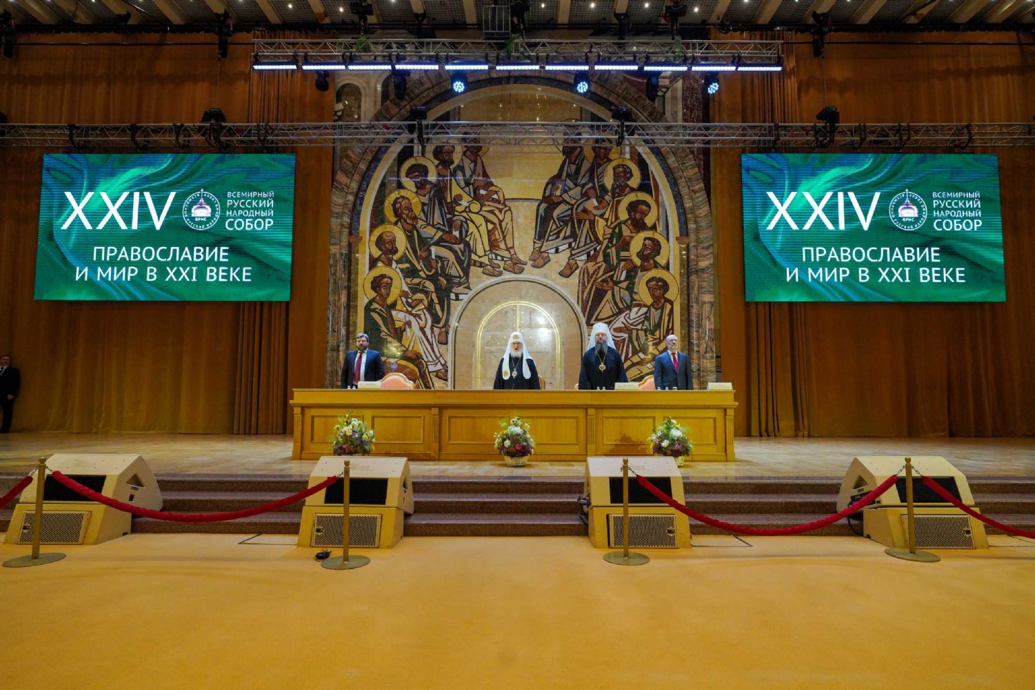 25 октября в Зале церковных соборов кафедрального соборного Храма Христа Спасителя в Москве Святейший Патриарх Московский и всея Руси Кирилл возглавил пленарное заседание XXIV Всемирного русского народного собора (ВРНС) на тему «Православие и мир в XXI веке».
