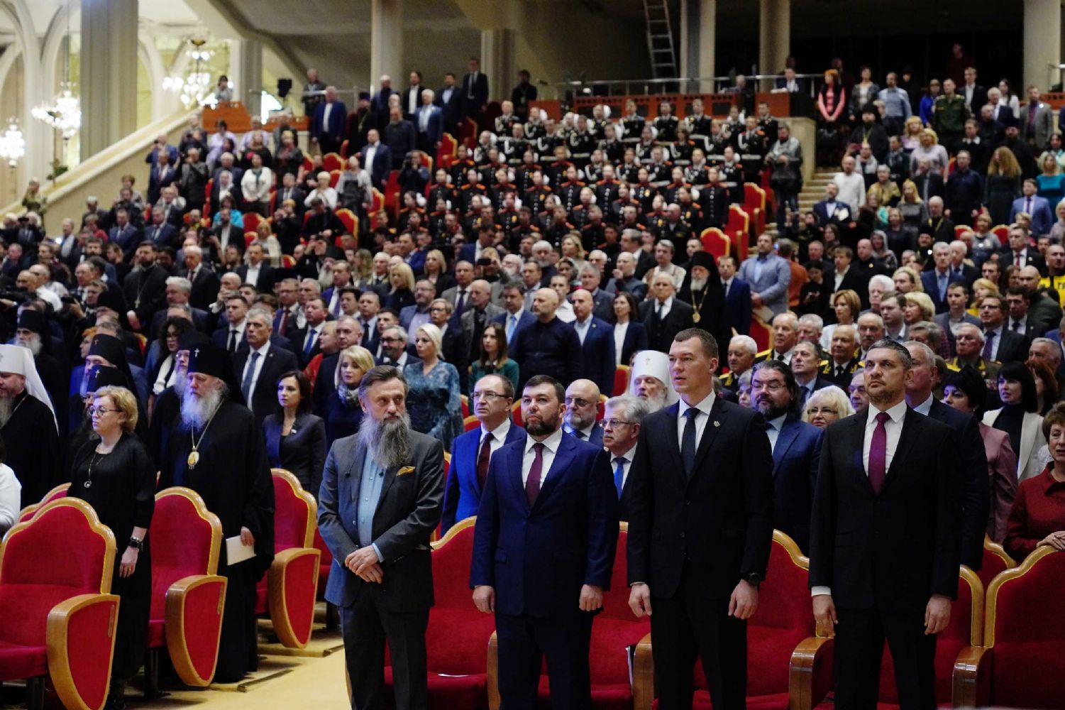 Путин подчеркнул, что многие из участников Собора поддерживают российских военных, участвующих в специальной военной операции, оказывают помощь жителям Донбасса, Херсонской и Запорожской областей, доказывая делом, что только сплоченный, объединенный общими целями народ способен достойно отвечать на беспрецедентное внешнее давление, добиваться всех поставленных стратегических целей.