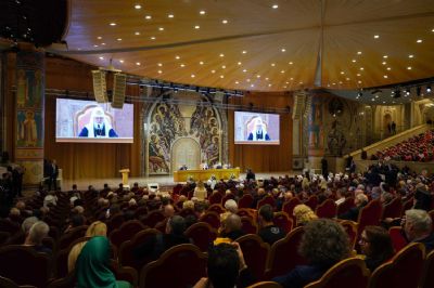 Глава ВРНС Патриарх Московский и всея Руси Кирилл выступил с основным докладом. Святейший Владыка отметил опасности глобализма, который «организует интеграционные, объединительные процессы через ослабление и разрыв глубоких духовных связей между людьми, а также между Богом и человеком».