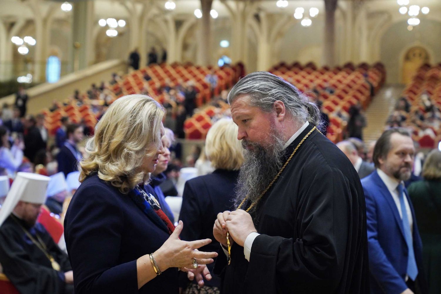 Президент РФ в приветственном слове отметил, что «сегодня, когда мы сталкиваемся с серьёзными вызовами, вопросы консолидации нашего народа вокруг важных, масштабных задач укрепления духовного, культурного, экономического суверенитета приобретают особое, судьбоносное значение. В этой связи отмечу тот огромный, колоссальная вклад, который вносит в единение общества, в сбережение духовно-нравственных, семейных идеалов и ценностей, сохранение нашей исторической памяти и идентичности, воспитание молодёжи Русская православная церковь, представители всех традиционных религий России, и конечно, патриотические организации – такие как Всемирный русский народный собор».