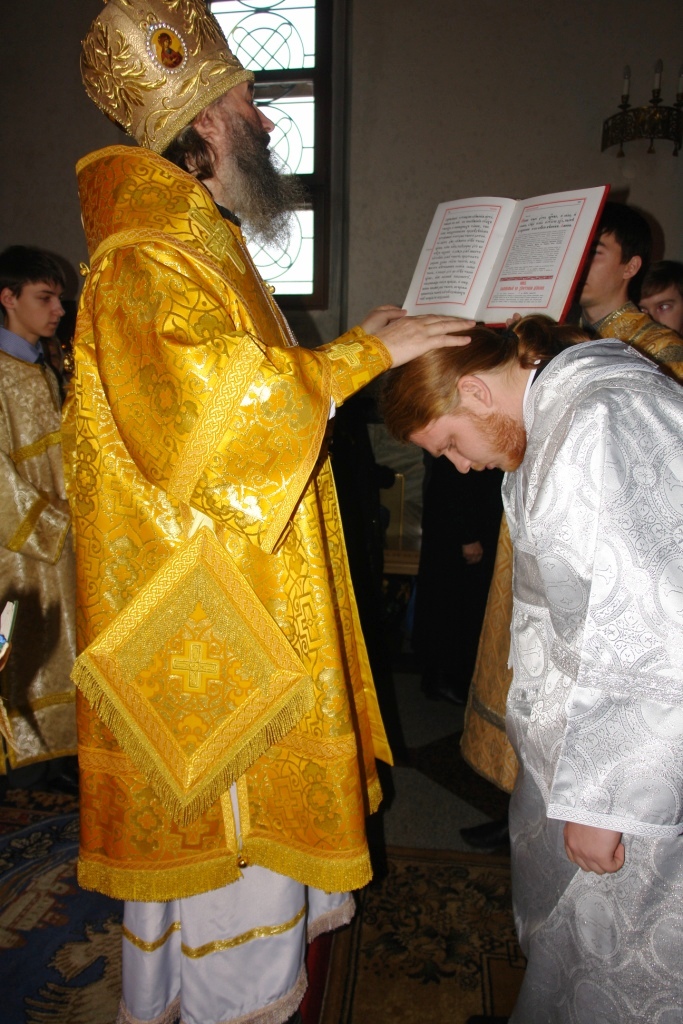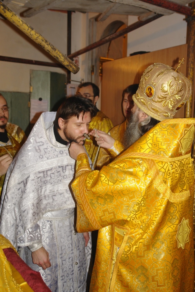 В этот воскресный день за Литургией, на которой Владыке сослужил клирик прихода иерей Алексий Михеев, было совершено таинство священства над двумя ставленниками. В диаконский чин был поставлен выпускник Нижегородской Духовной семинарии Андрей Дружинин, а в иерейский сан – диакон Алексий Скрябин.