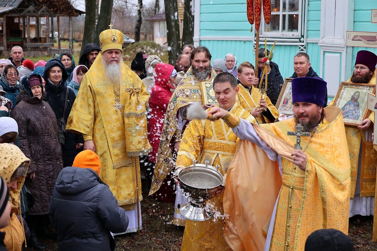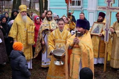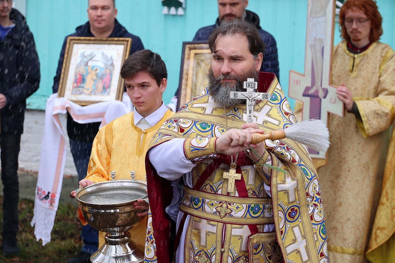После Литургии прошел крестный ход вокруг храма со чтением Евангелия и кроплением святой водой.