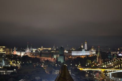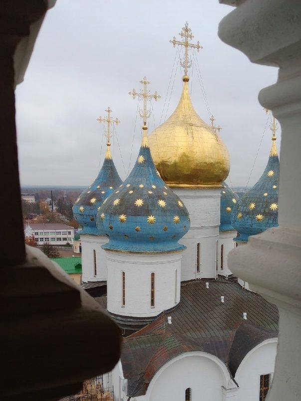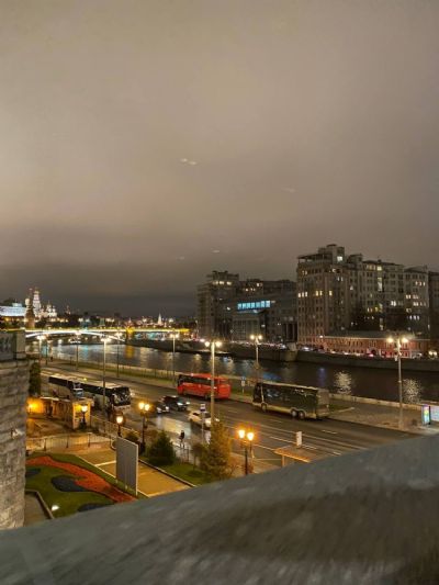 После службы поднялись на смотровую площадку у центрального купола храма – оттуда открывается потрясающий вид на вечернюю Москву.