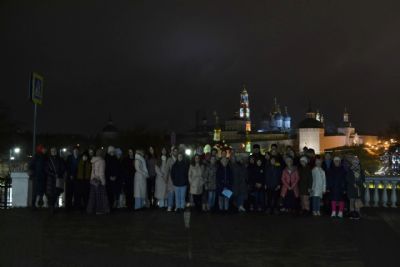 Приехав рано утром в Троице-Сергиеву лавру, паломники отправились на братский молебен, потом на раннюю Литургию в Троицком соборе, где почивают мощи преподобного Сергия. Практически все дети исповедовались и причастились Святых Христовых Таин.