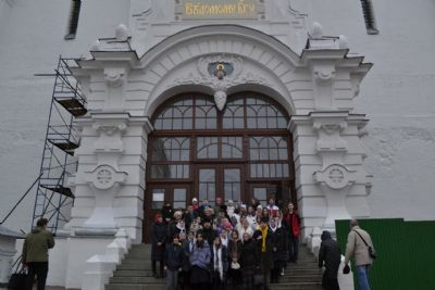 Подкрепив силы на студенческом обеде в семинарской трапезной, погрузились в автобус и направились к Москве. По пути заехали в Хотьково – в Покровском женском монастыре приложились к мощам преподобных Кирилла и Марии, родителей преподобного Сергия, а также в Радонеж на святой источник.
