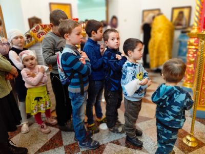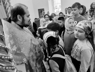 Богослужение совершил клирик Благовещенского кафедрального собора иерей Александр Староверов, окормляющий воскресную школу. Многие дети исповедлвались и причастились Святых Христовых Таин.