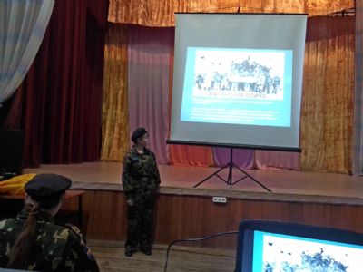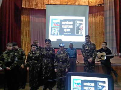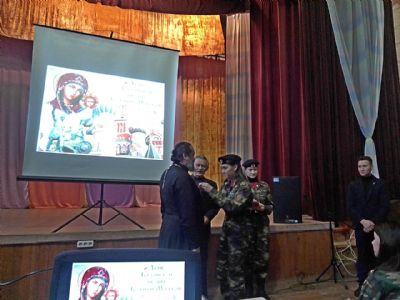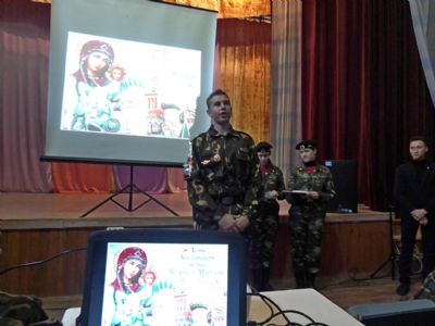 Далее представители кадетских отрядов выступали с презентациями, патриотическими песнями и стихами. В зале царила теплая дружеская атмосфера. Завершился праздник совместной трапезой в храме Вознесения Господня с. Кужмара.
