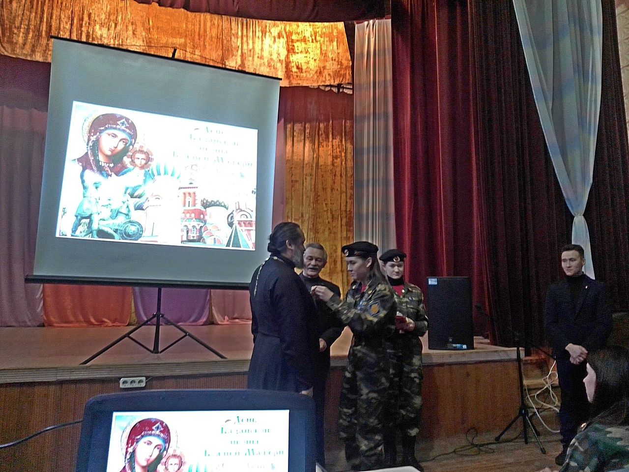 На торжественной части были вручены награды и звания отличившимся кадетам. Высшей наградой - орденом - был отмечен иерей Алексий Леонов.