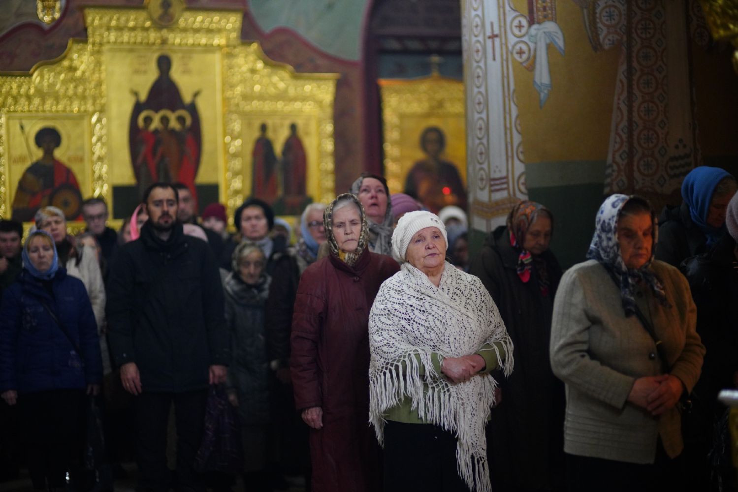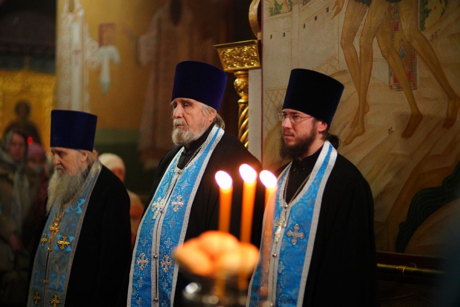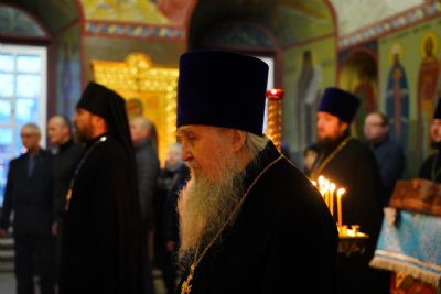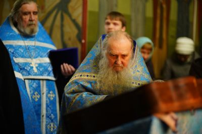 Архипастырю сослужили секретарь Йошкар-Олинского епархиального управления иеромонах Серафим (Пасанаев), настоятель собора протоиерей Евгений Кутырев, клирики собора и протодиакон Михаил Козловский.