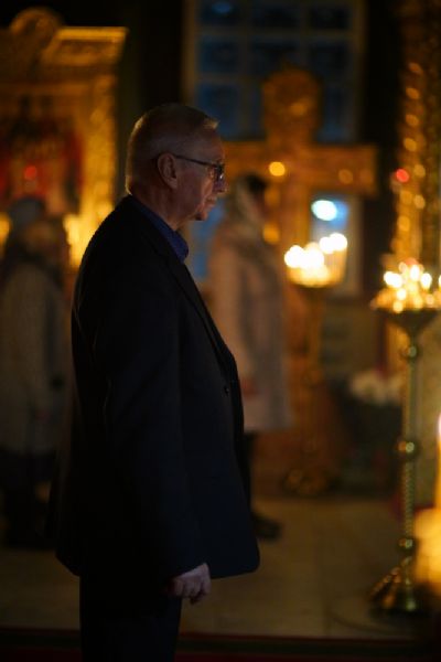 Богослужение началось торжественной встречей владыки и облачением в центре храма.
