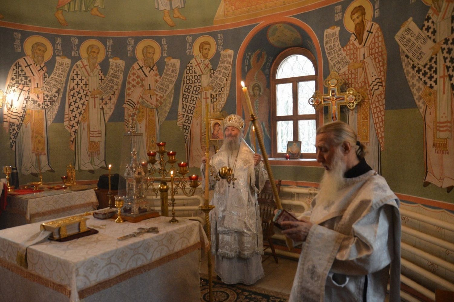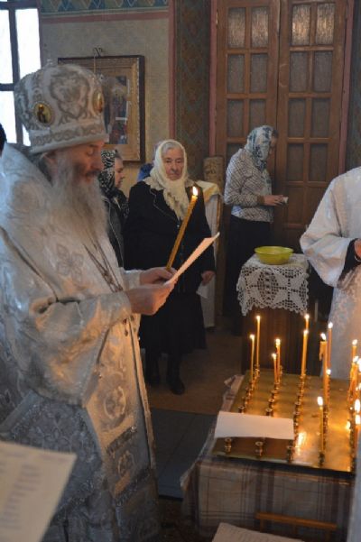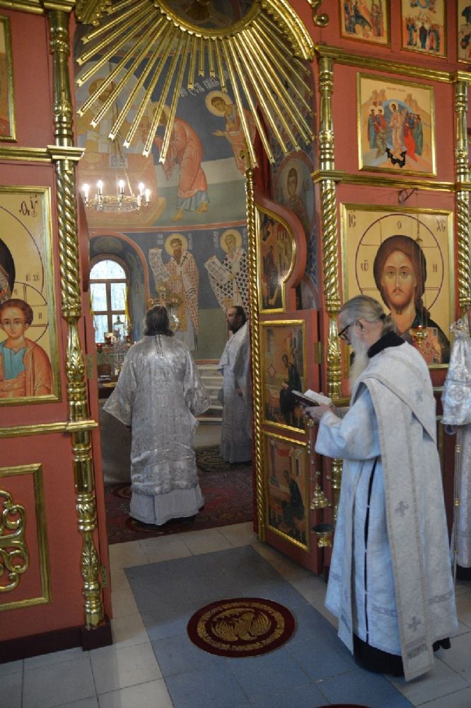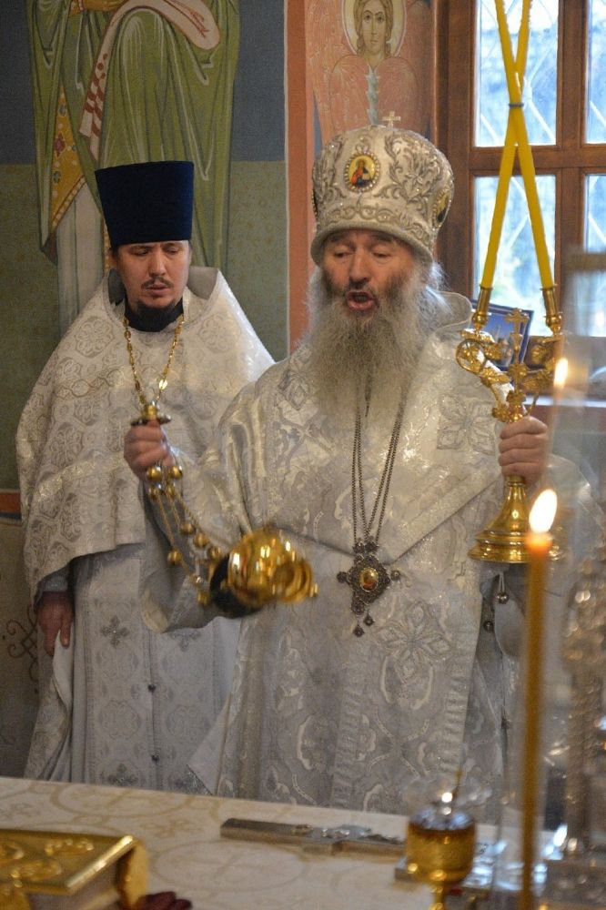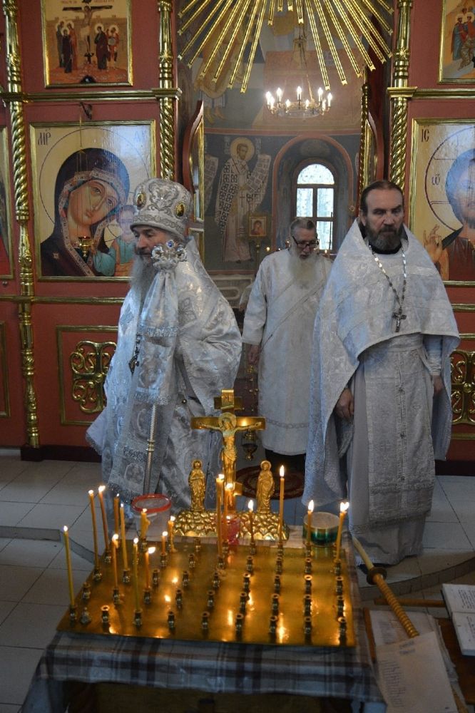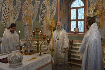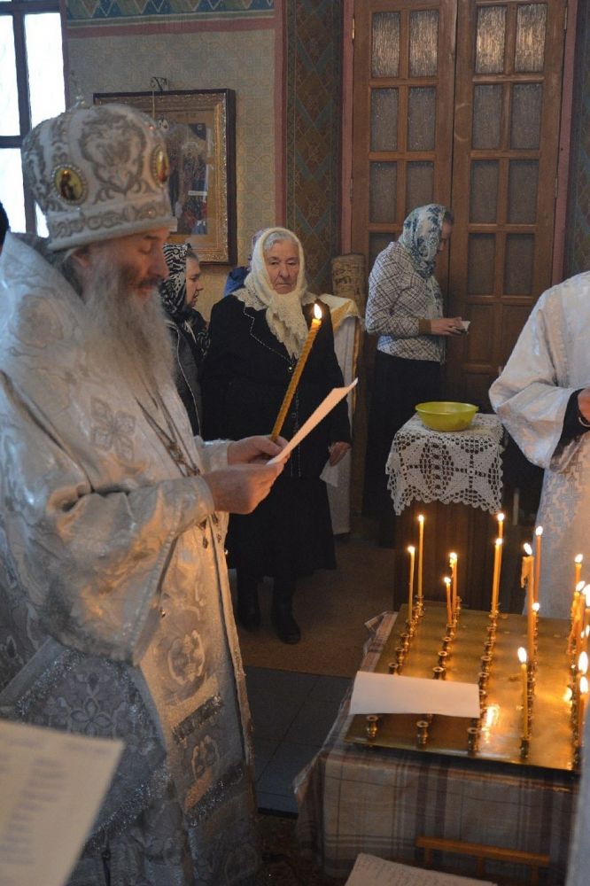 Владыке сослужили секретарь Йошкар-Олинского епархиального управления иеромонах Серафим (Пасанаев), клирик храма Рождества Пресвятой Богородицы с. Семеновка иерей Сергий Асланов и протодиакон Михаил Козловский. Богослужебные песнопения исполнял хор храма с. Семеновка.