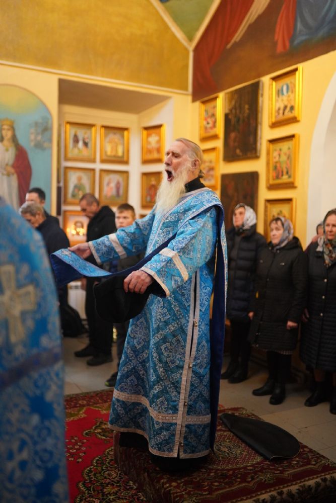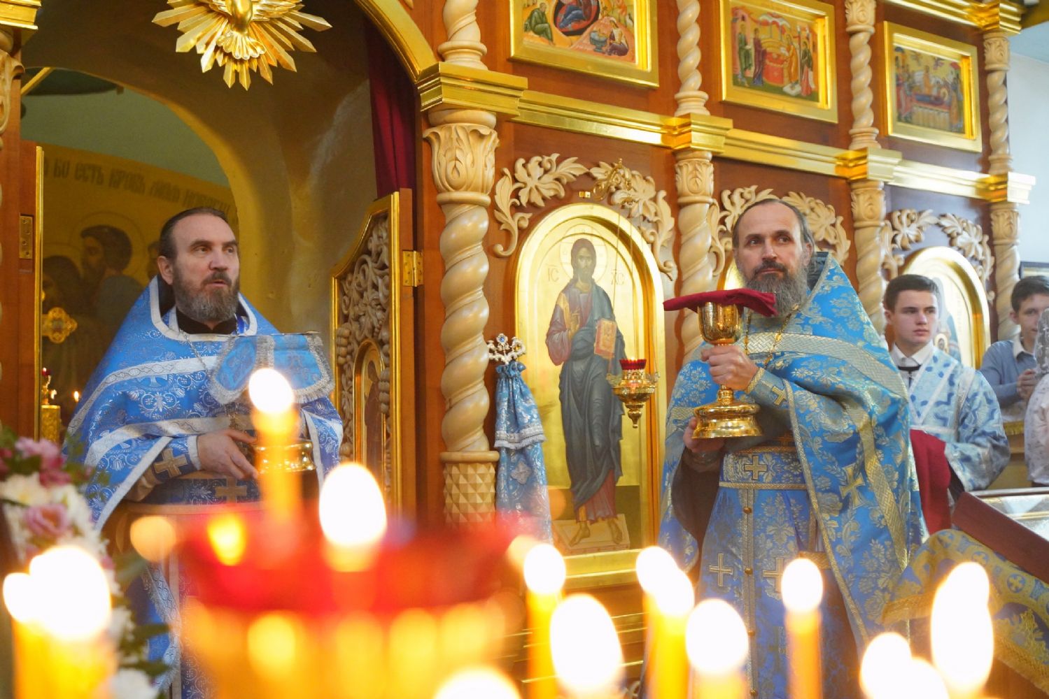Архипастырю сослужили секретарь Йошкар-Олинского епархиального управления иеромонах Серафим (Пасанаев), настоятель храма иерей Александр Коваль, клирик Воскресенского собора г. Йошкар-Олы иерей Игорь Коваль и протодиакон Михаил Козловский.