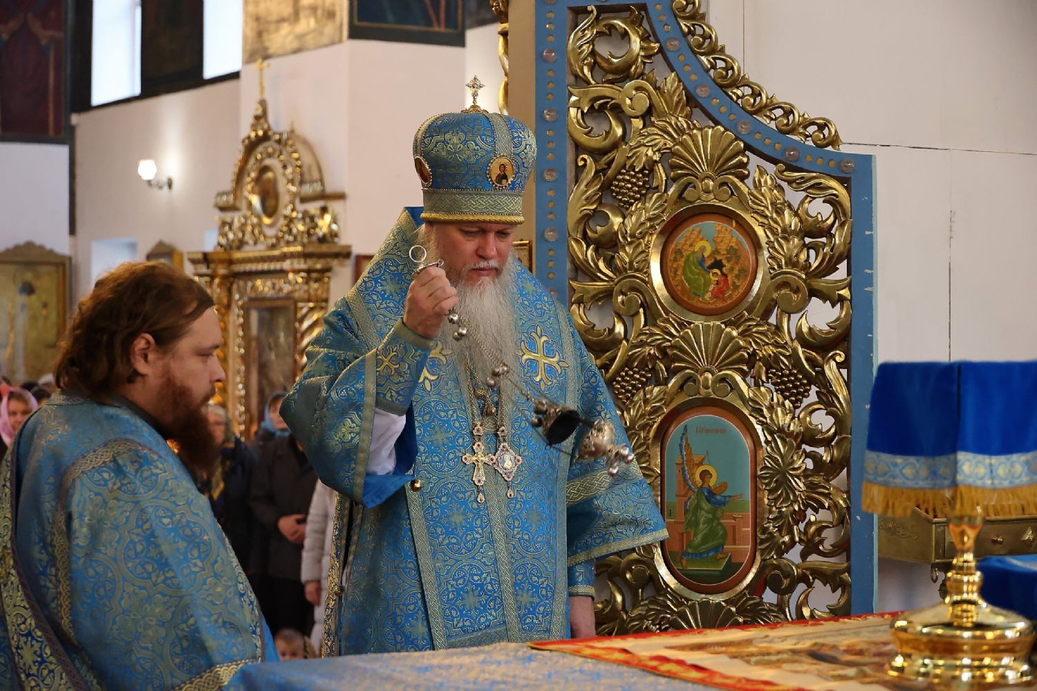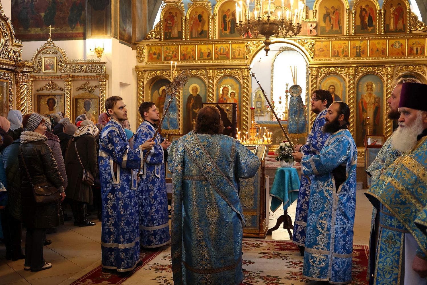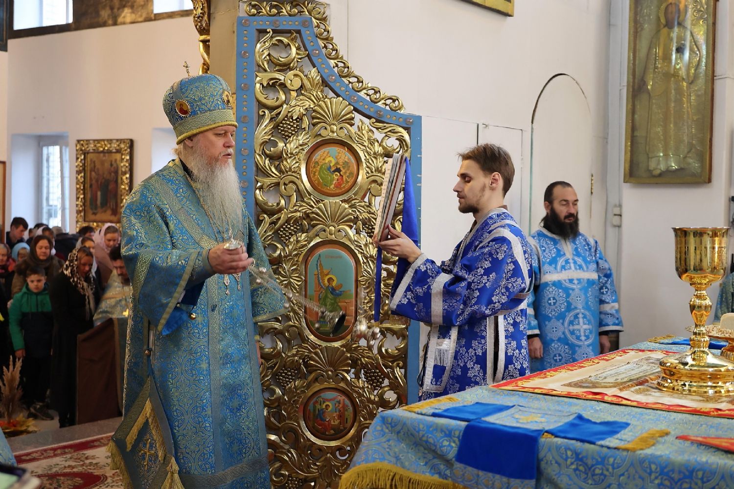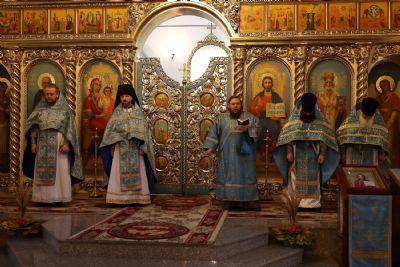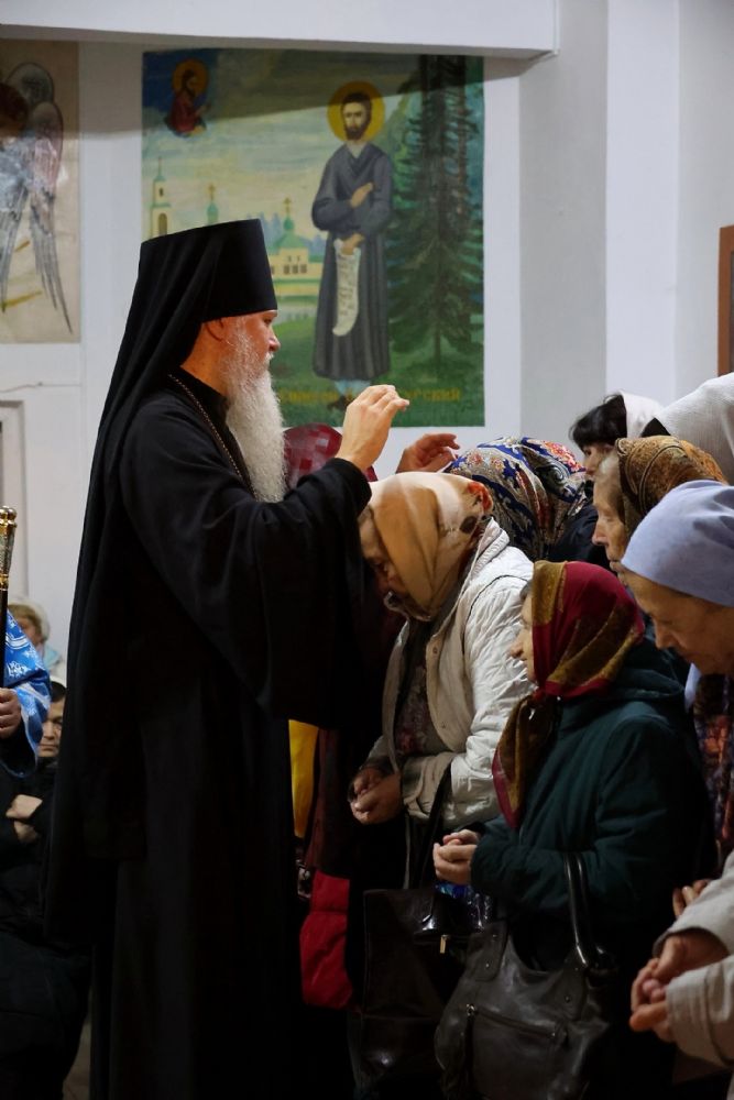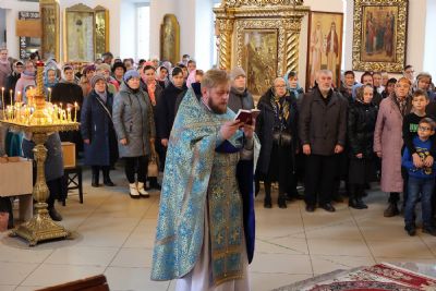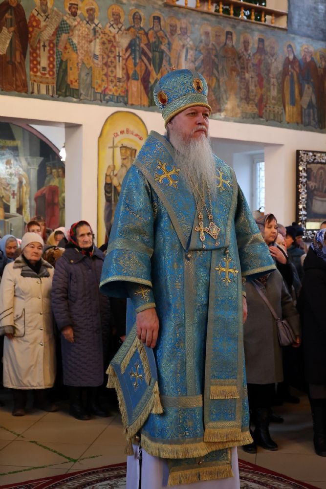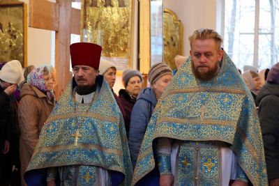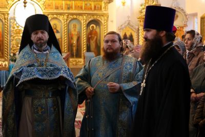 Его Преосвященству сослужили клирики собора иерей Александр Усков, иерей Иоанн Белинский, иеромонах Авель Крашенинников, иерей Димитрий Карпетченко, диакон Иоанн Захаров. Песнопения исполнил архиерейский хор под управлением Любови Михеевой.