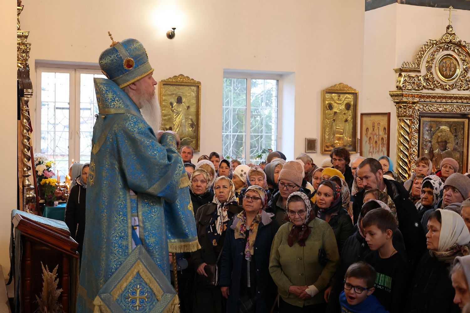 «Сегодня, дорогие во Христе братья и сестры, мы с вами особенно нуждаемся в молитвах Пресвятой Богородицы, Которая всегда покрывала и будет покрывать Своим Покровом нашу Богом хранимую страну. Мы будем призывать Её, как и всегда, в своих сердечных молитвах. Будем стараться исправлять свою жизнь так, чтобы она была действительно угодна Богу. И тогда, по молитвам Божией Матери и многих святых, в земле Русской просиявших, Господь дарует Свою милость. И мы надеемся, что завершатся военные действия, и вновь мир будет и в нашей стране, и в других странах нашей планеты», – отметил владыка.