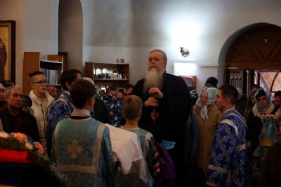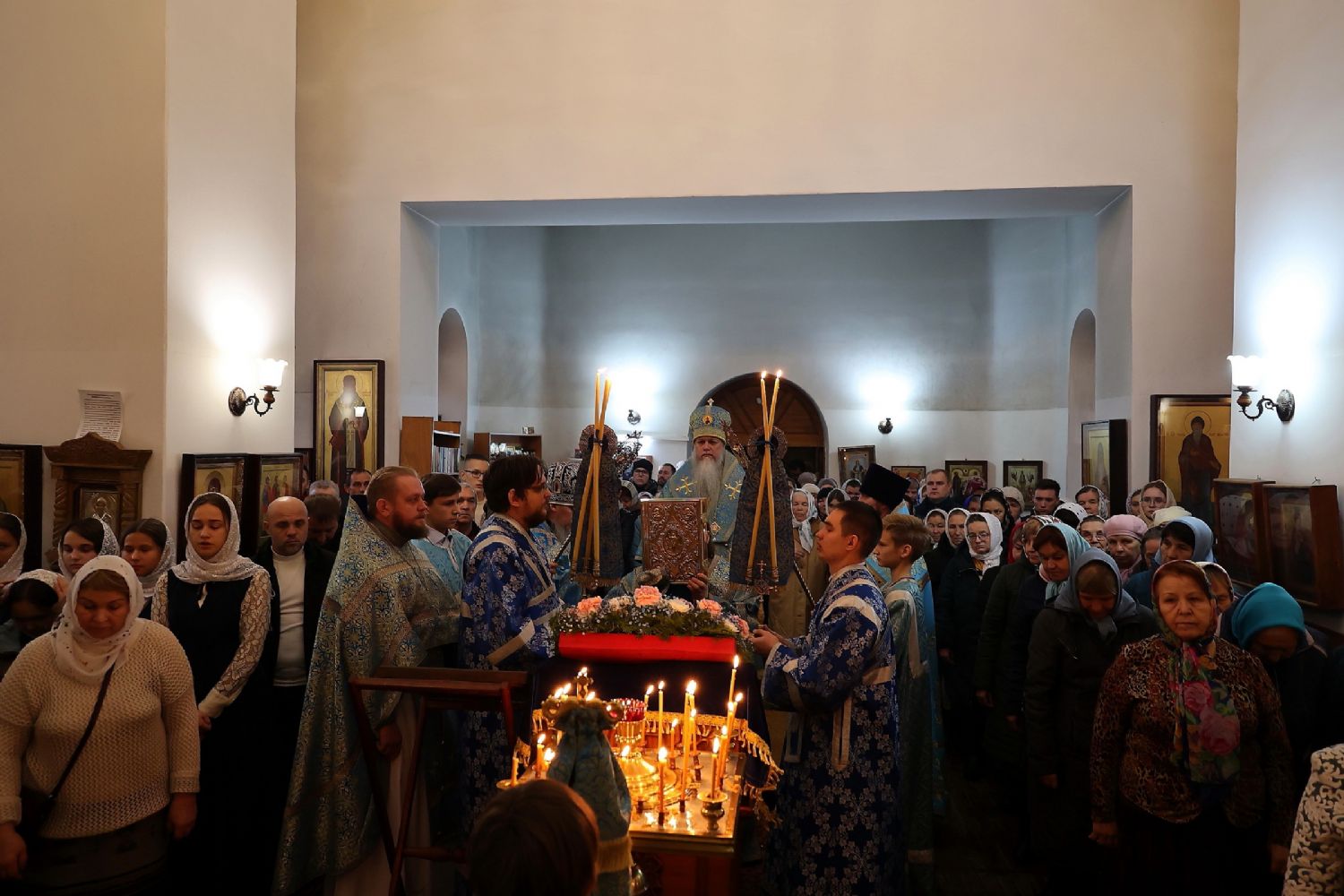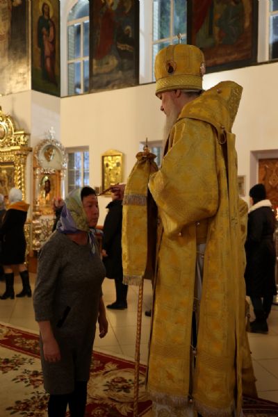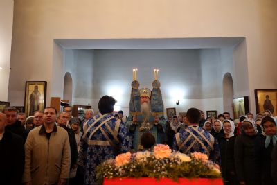 После богослужения глава епархии обратился к прихожанам с проповедью, рассказав об истории иконы Богородицы, именуемой «Всех скорбящих Радость», и о чудесах, явленных по молитвам перед ней.